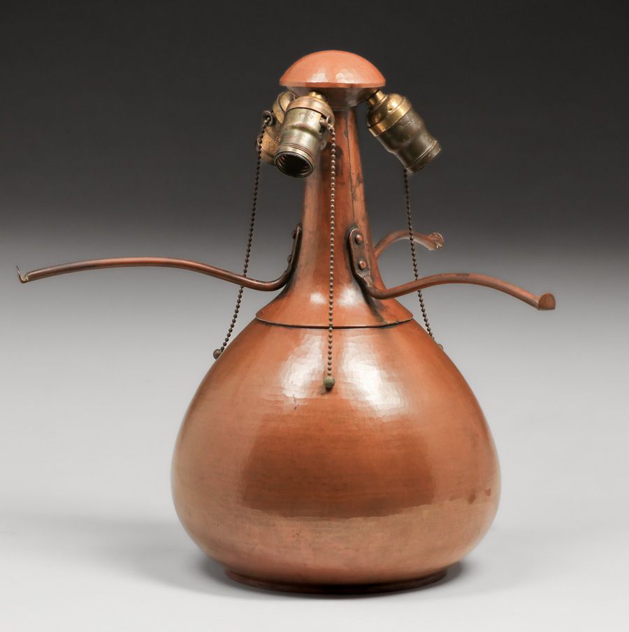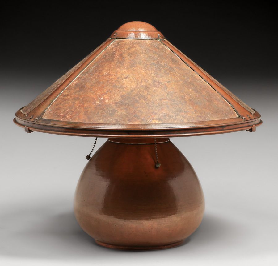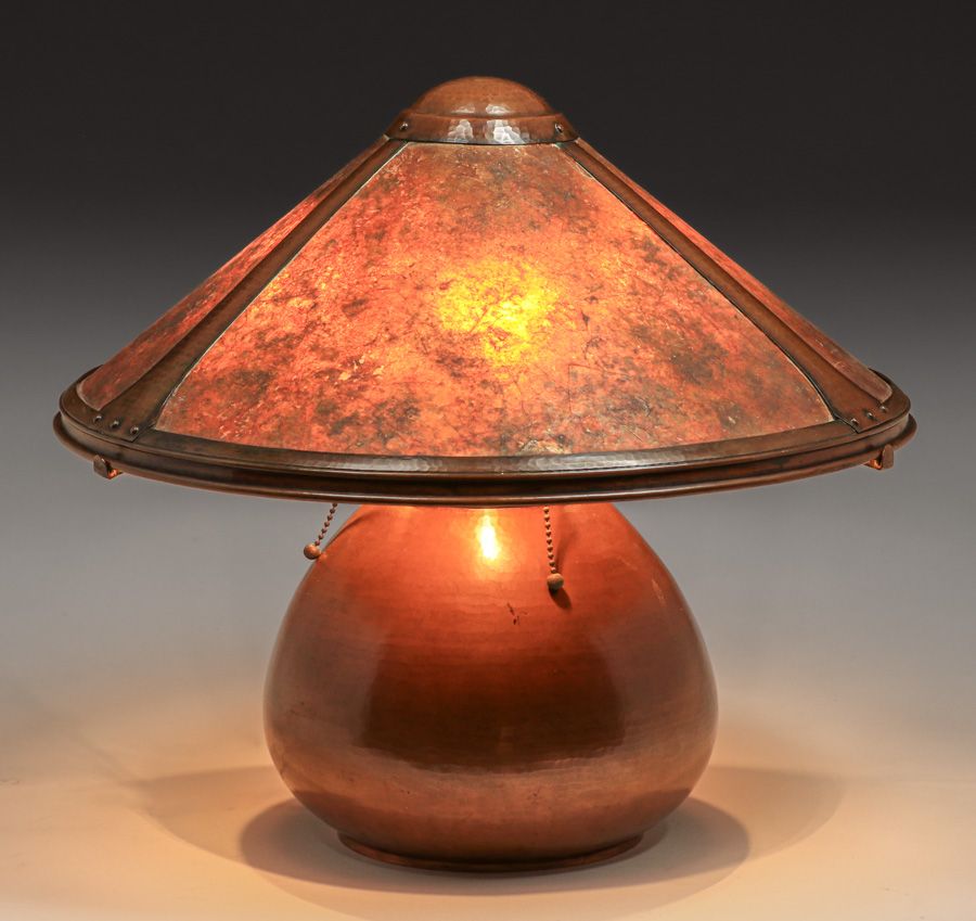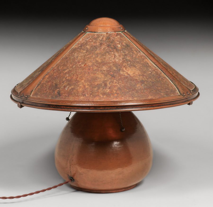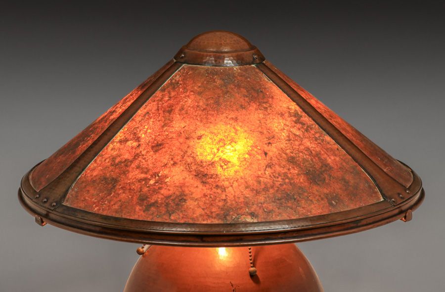 - Dirk van Erp Hammered Copper & Mica Bulbous Lamp c1915-1925