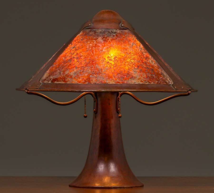 - Dirk van Erp Hammered Copper & Mica Lamp c1911-1912