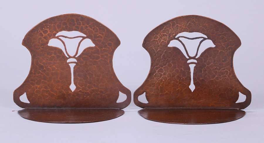 - Dirk van Erp Hammered Copper Poppy Bookends