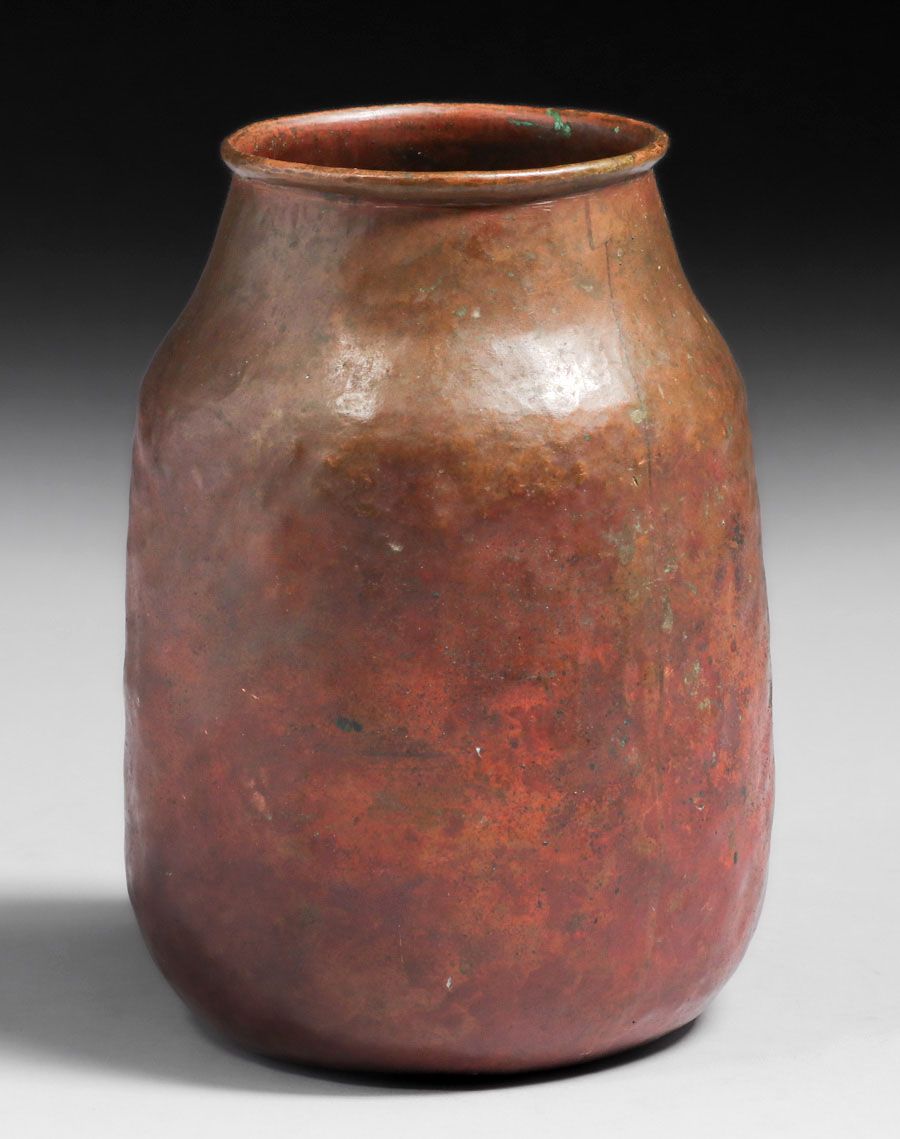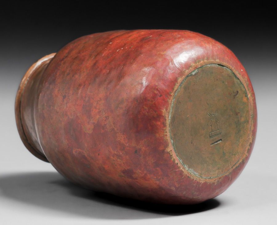 Dirk van Erp Hammered Copper Red Warty Vase c1915-1920. Signed with open-box, San Francisco mark. Excellent original red patina. 6.75"h x 4.75"d SOLD
