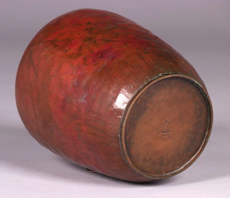 - Dirk van Erp Hammered Copper Red Warty Vase c1915-1920