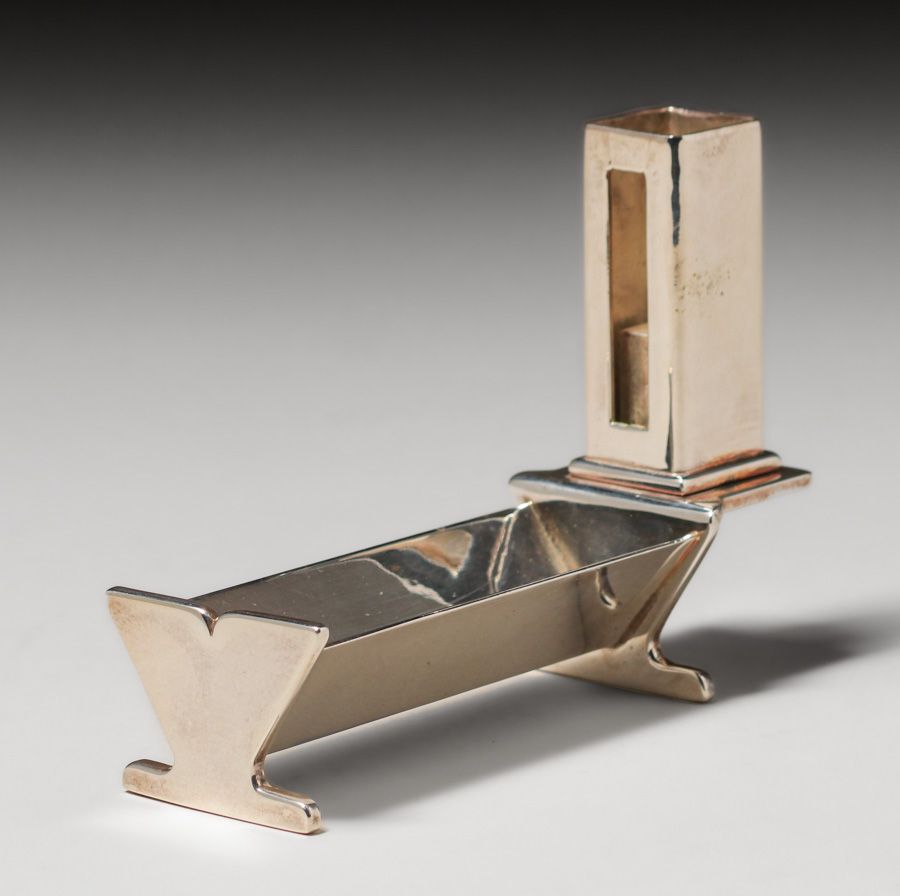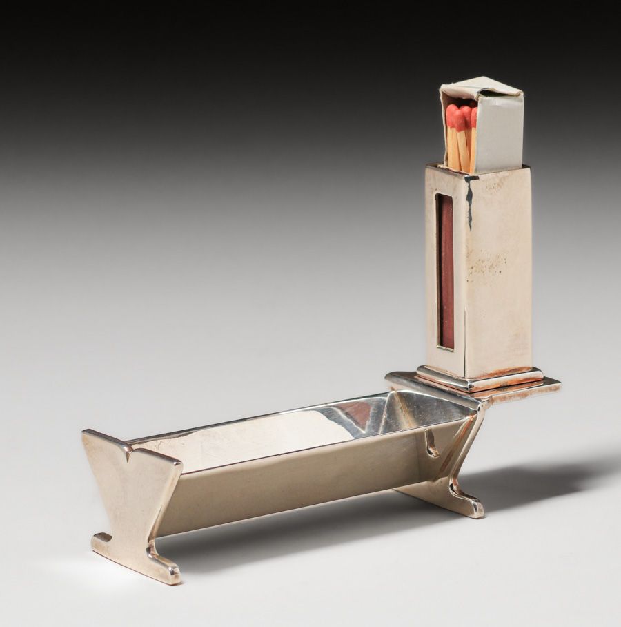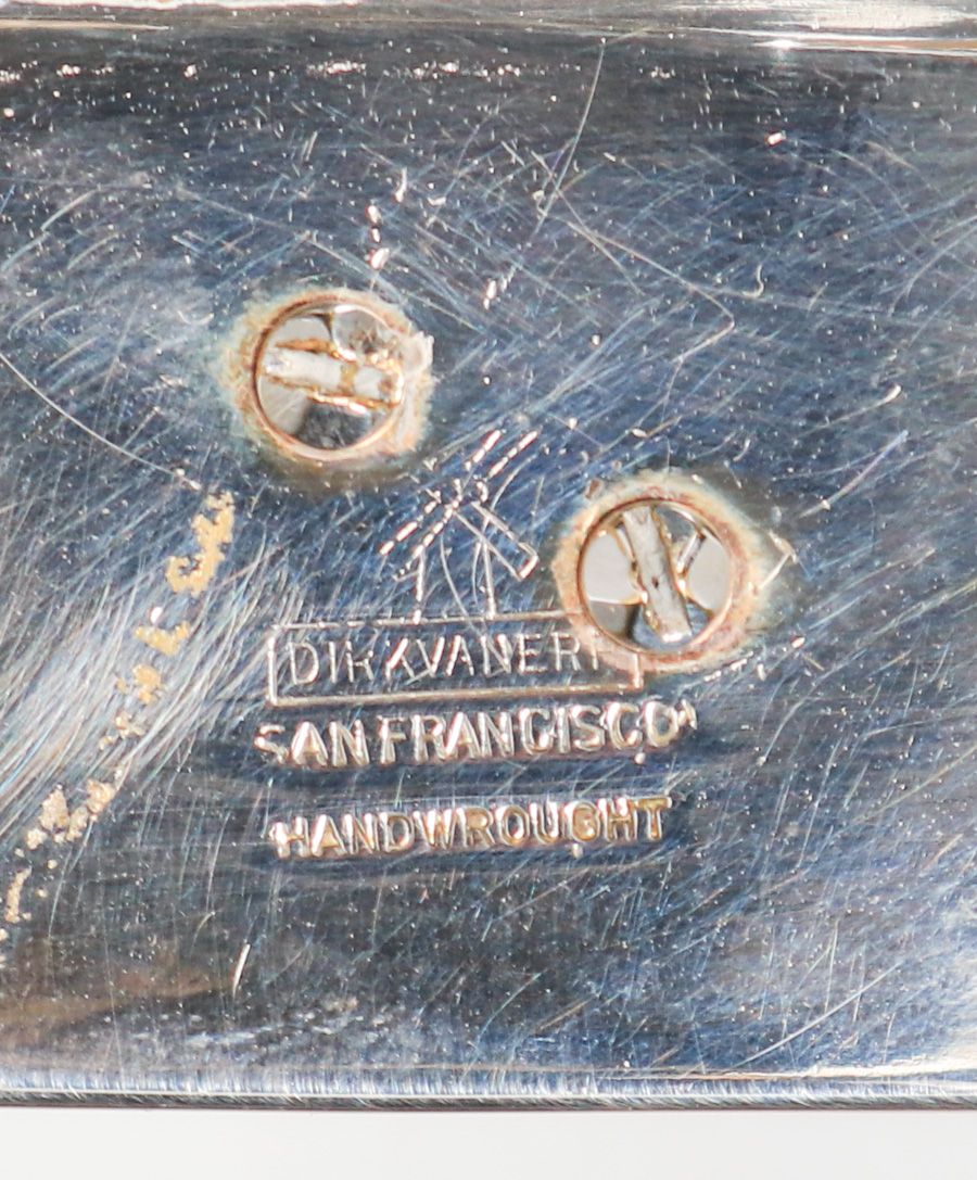 Dirk van Erp Hammered Copper Silver-Plated Cigarette & Match Box Holder c1950s. Signed with rare miniature windmill stamp. Excellent condition. 5.25" x 1 7/8"w x 3.75"h + match box SOLD