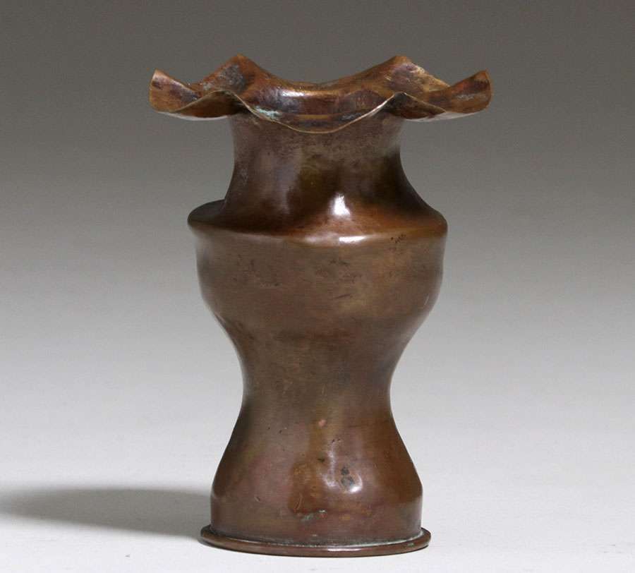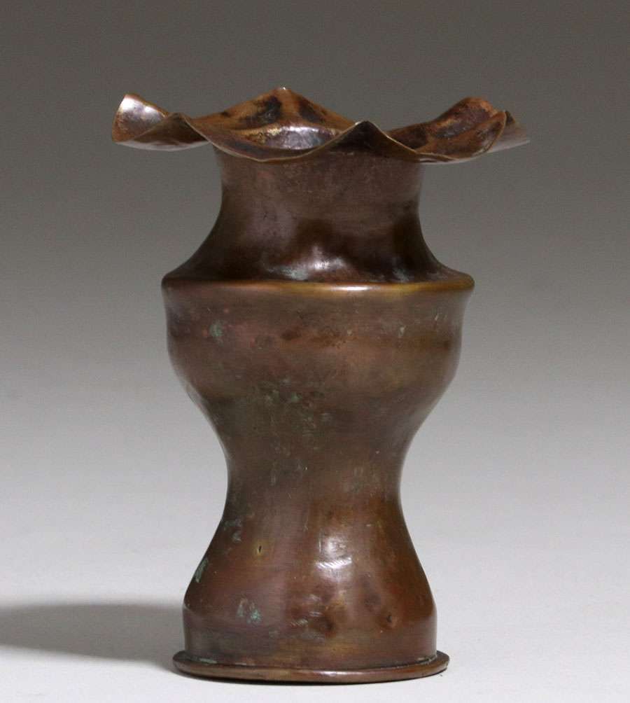 - Early Dirk van Erp Hammered Brass Flared Shell Casing Vase c1902-1908