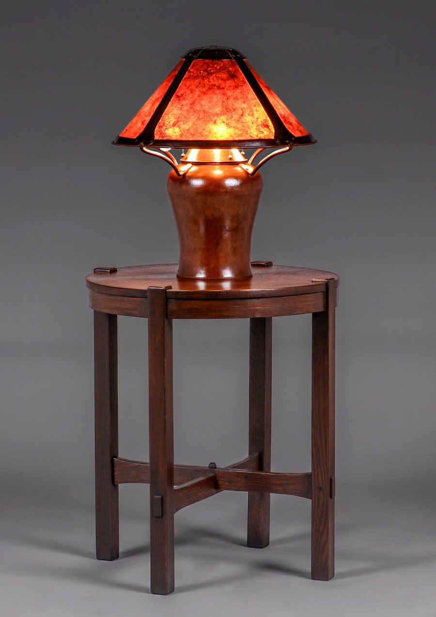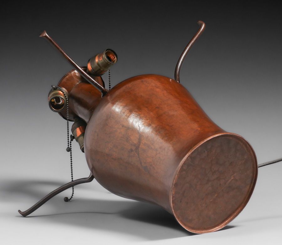 - Early Dirk van Erp Hammered Copper & Mica Milkcan Lamp c1908-1909