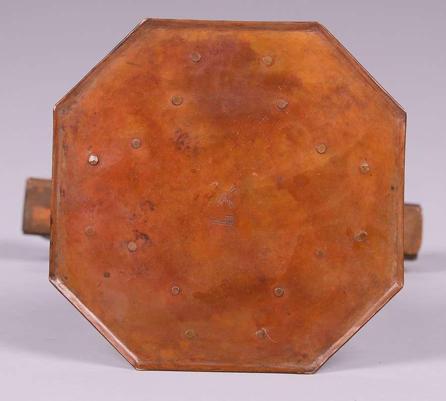 - Early Dirk van Erp Hammered Copper Triple Strap-Form Candelabra c1911-1912