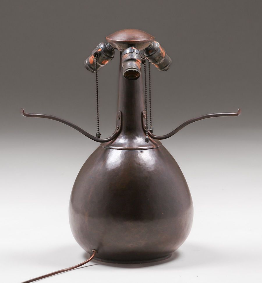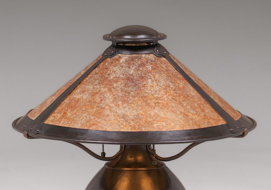 - Early Dirk van Erp - Wiliam van Erp Hammered Copper & Mica Bulbous Lamp c1910