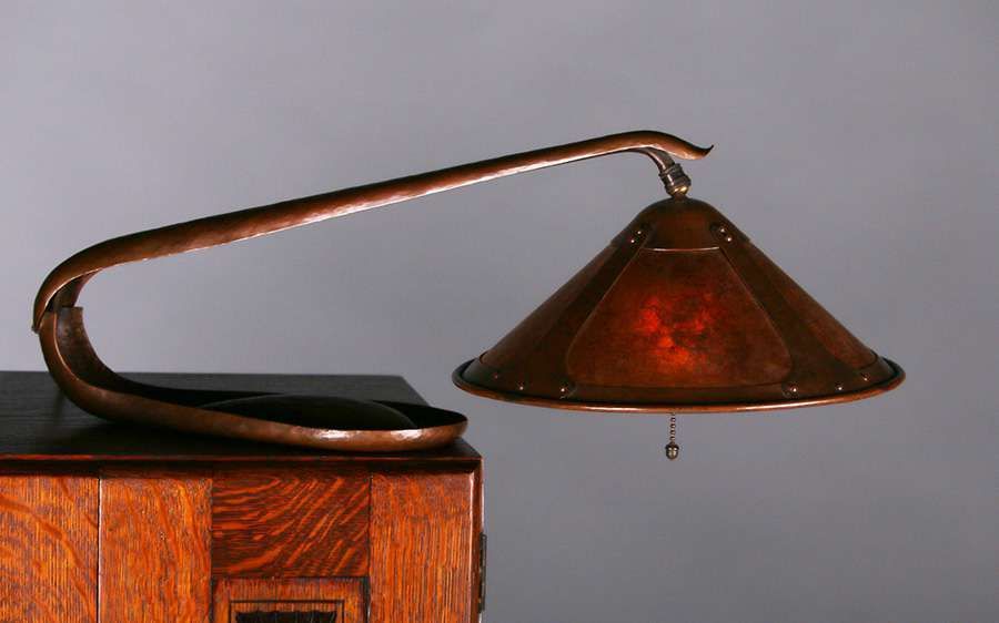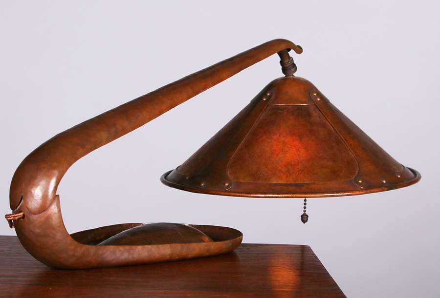 - Extremely rare Dirk van Erp hammered copper & mica cobra lamp c1909.