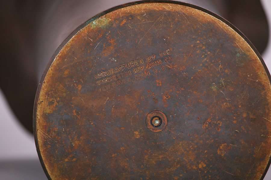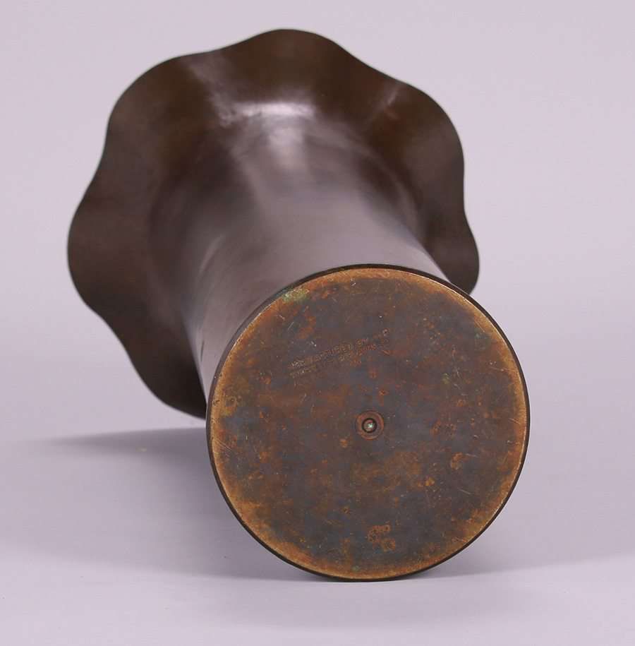 Huge Dirk van Erp hammered brass shell casing vase - umbrella stand c1902-1908. Excellent original patina. Signed "Winchester Repeating Arms Co 6-95". 27"h x 12"d SOLD