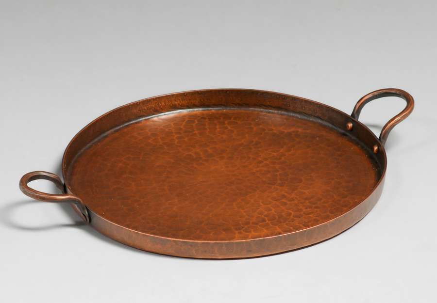 - Small Dirk van Erp Hammered Copper Two-Handled Tray c1915