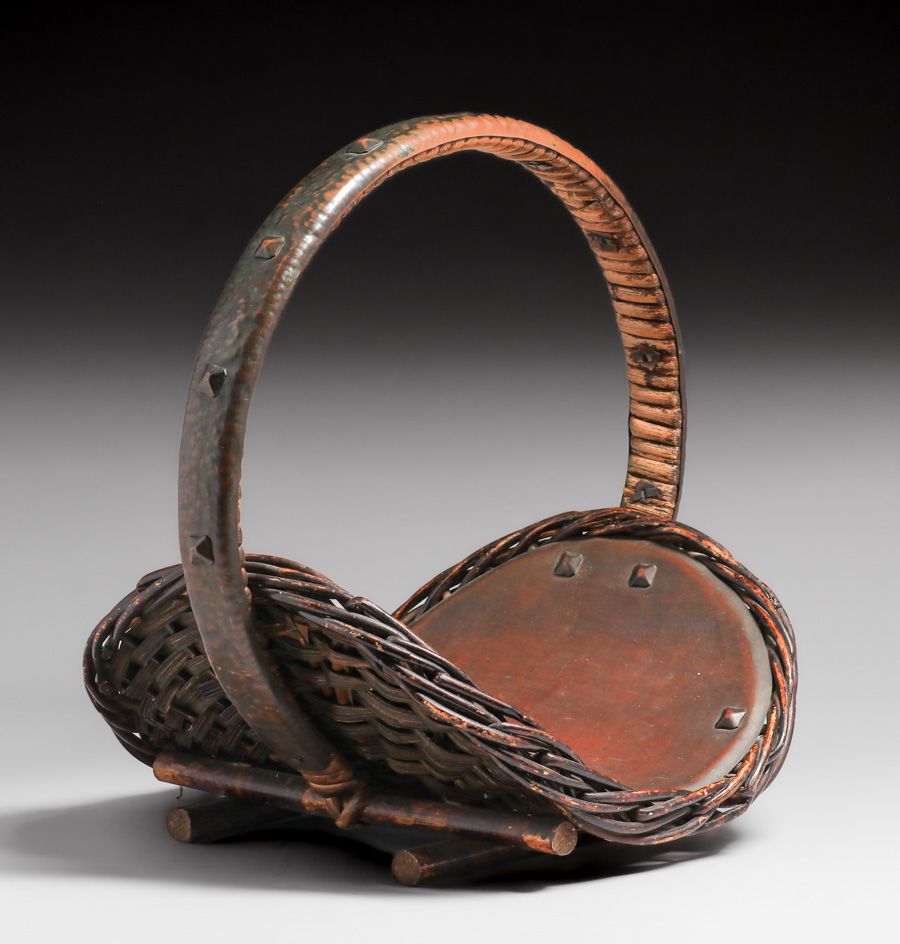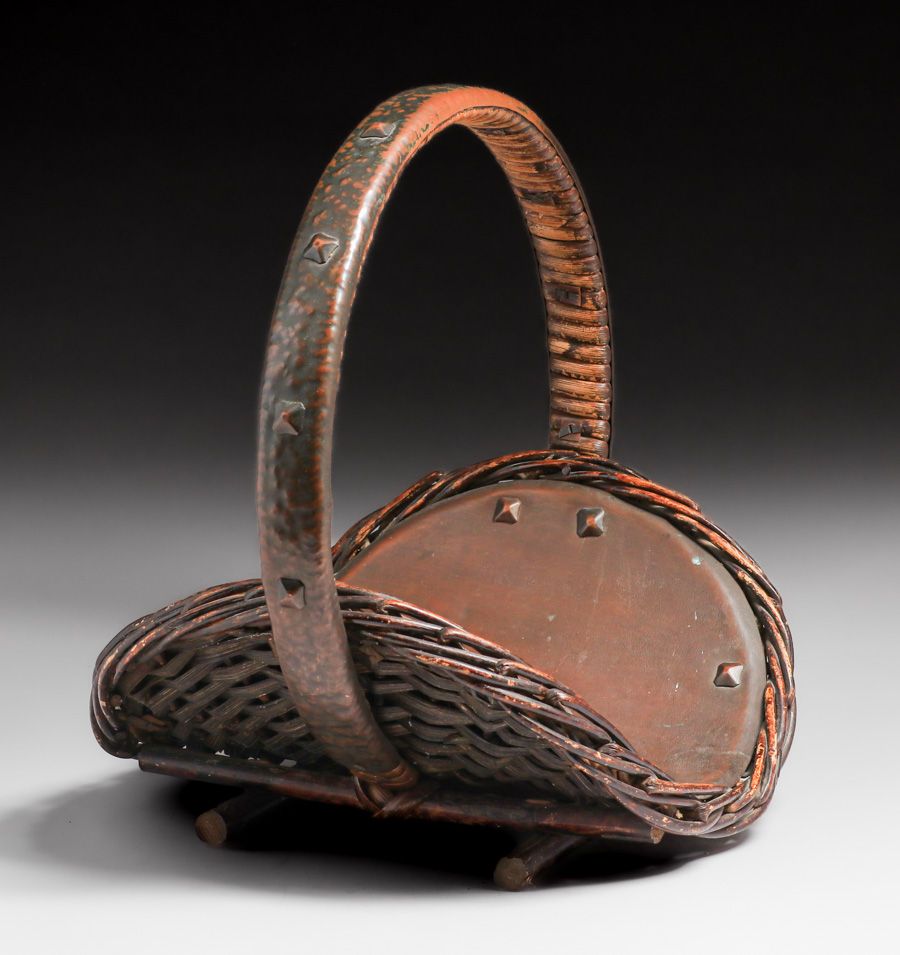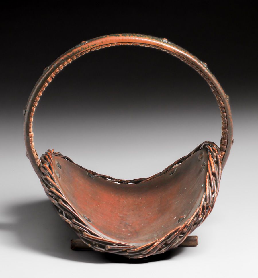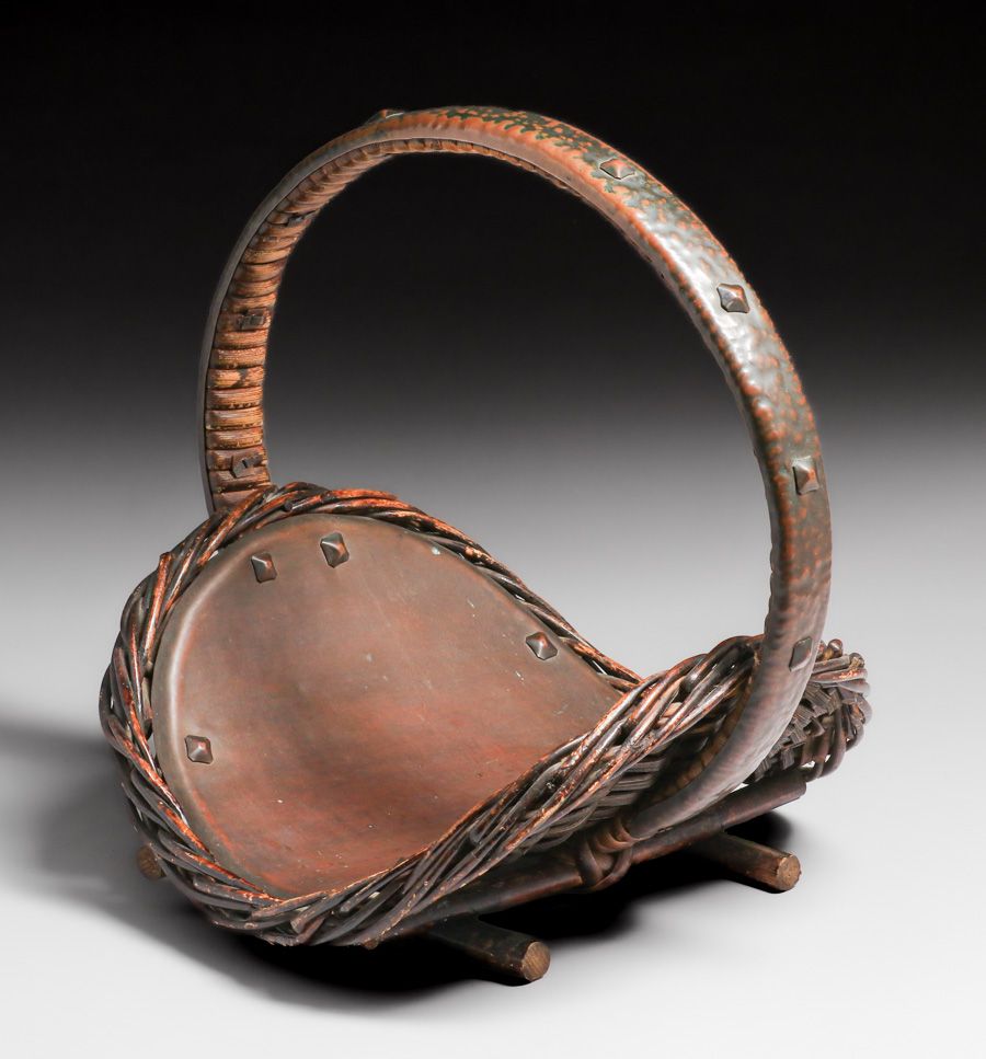 - Small Dirk van Erp Willow Log Basket Hammered Copper Warty Handle & Copper Liner c1917-1920