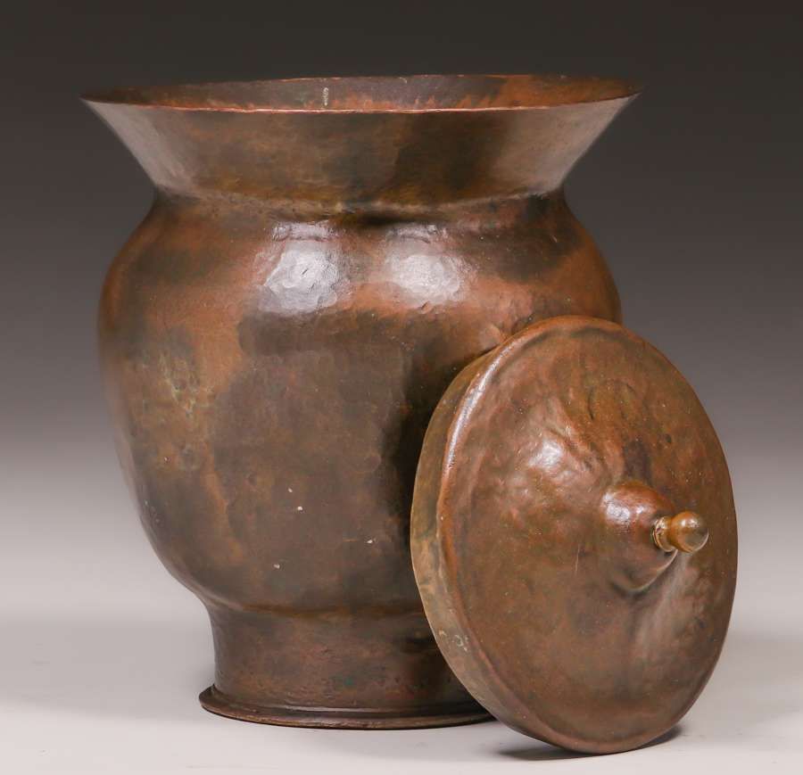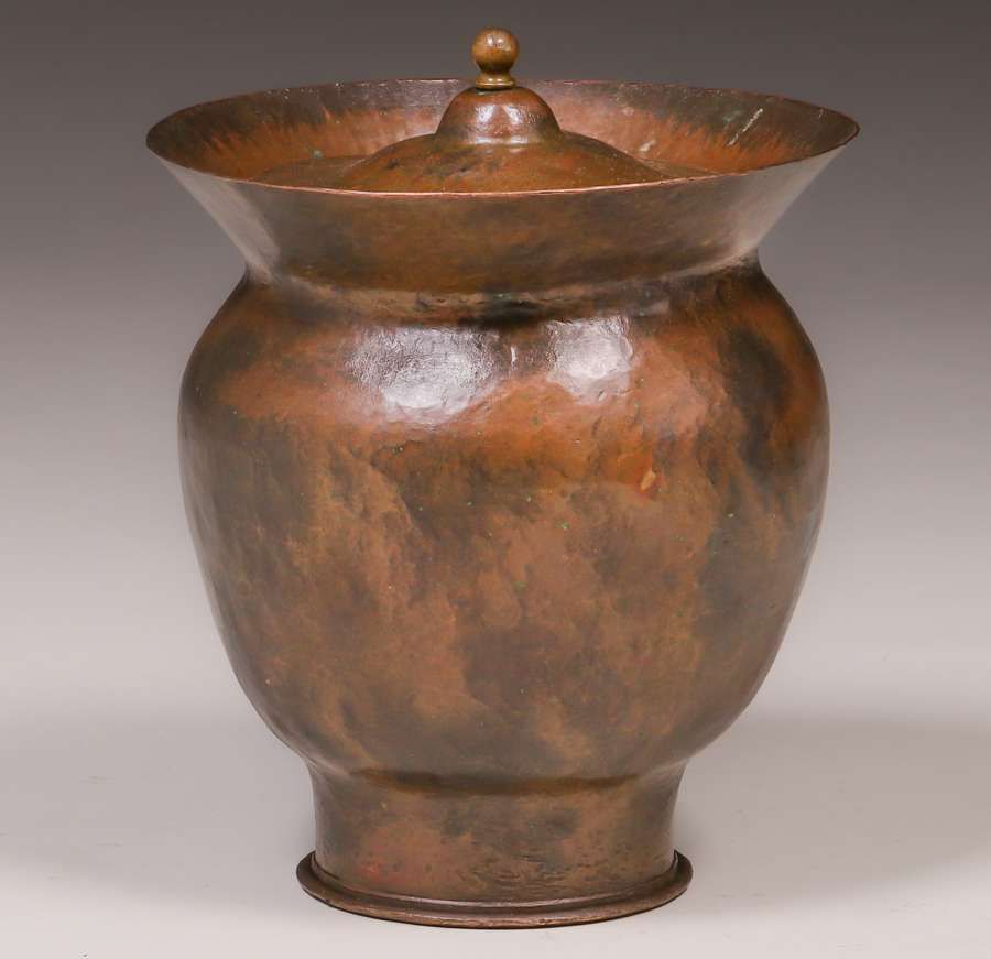 Unusual Dirk van Erp Hammered Brass Shell Casing Humidor c1907-1908. Signed "WNY 1-1907". Excellent original patina. 9"h x 7.5"d SOLD