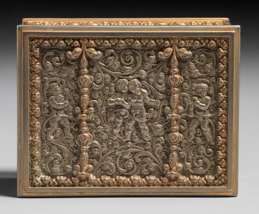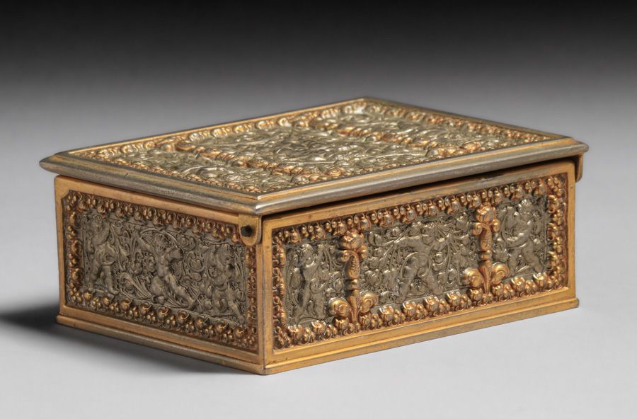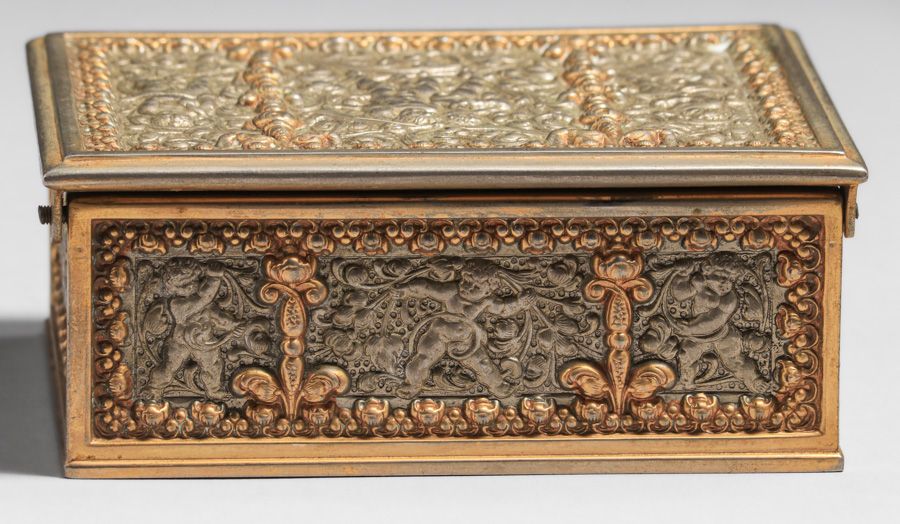- Early Erhard & Sohne German Gilt & Silver-Plated Bronze Jewelry Box c1890s