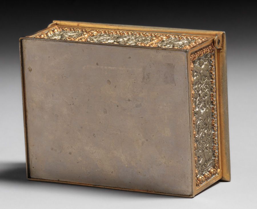 Early Erhard & Sohne German Gilt & Silver-Plated Bronze Jewelry Box c1890s. Signed. Excellent original patina. 5.25” x 4” x 2”h $950