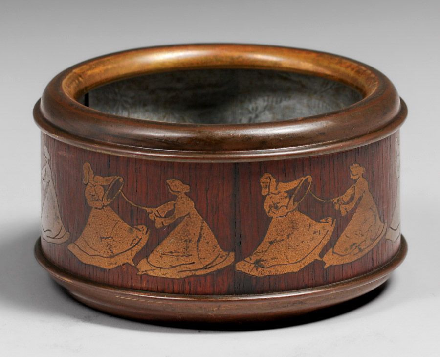 - Erhard & Sohne – German Arts & Crafts Mahogany & Brass Covered Vase c1905