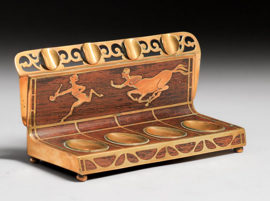 - Erhard & Sohne – German Arts & Crafts Mahogany & Brass Pipe Rest c1905