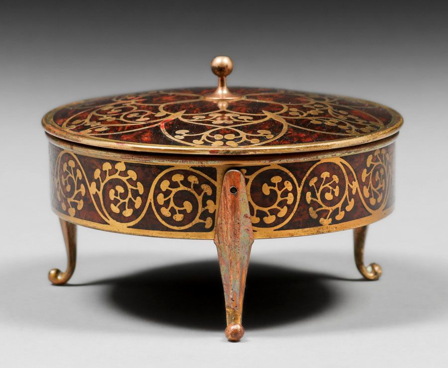 - Erhard & Sohne – German Arts & Crafts Mahogany & Brass Round Covered Box c1905
