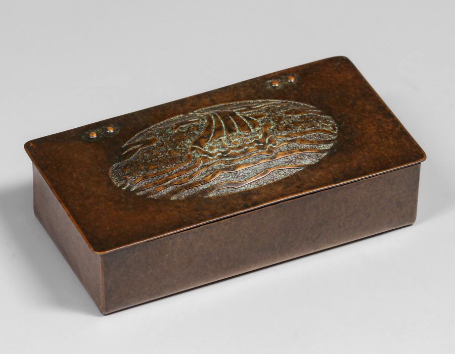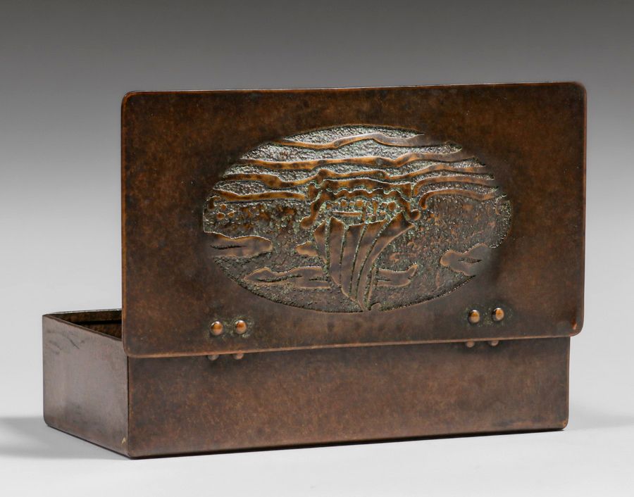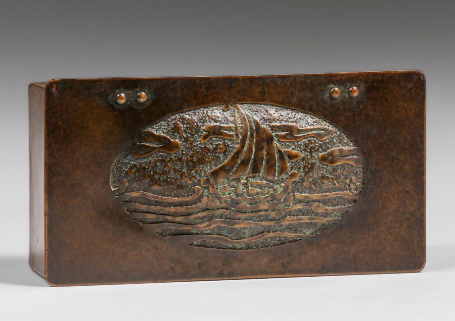 - Forest Craft Guild Acid-Etched Galleon Ship Copper Box c1910