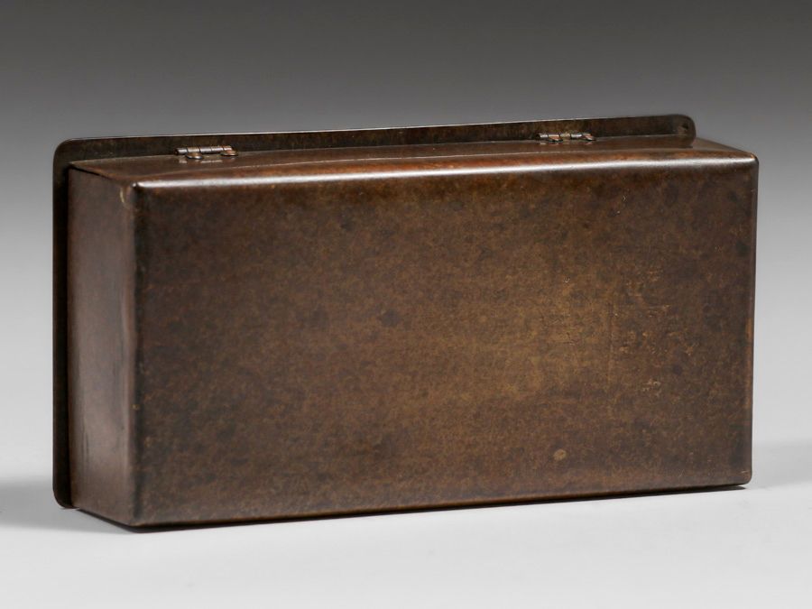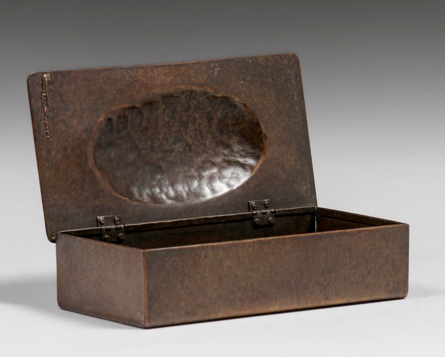 Forest Craft Guild Acid-Etched Galleon Ship Copper Box c1910. Unsigned. Excellent new patina. 6.25w x 3.25 x 2.25h inches SOLD