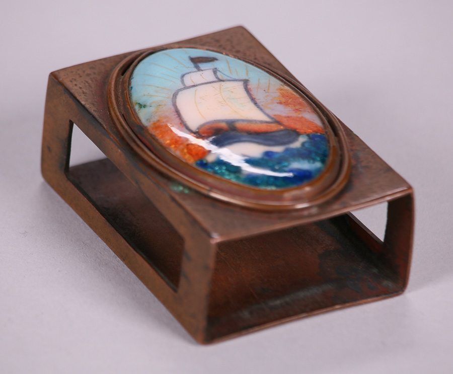 - Frank J. Marshall Hammered Copper & Enamel Matchbox Holder Boston