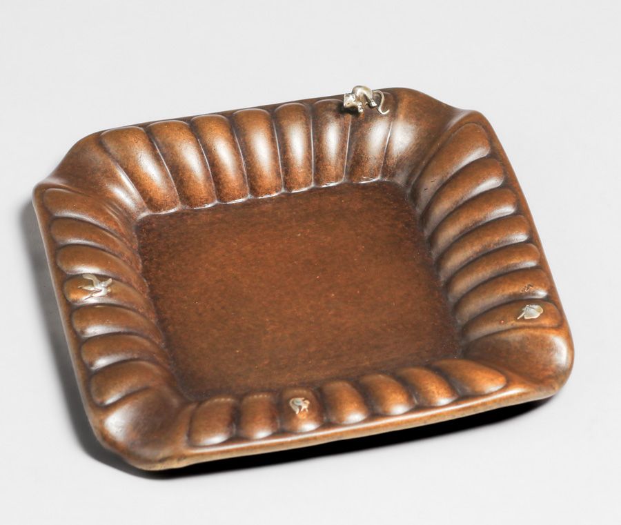 Gorham Hammered Copper & Silver Aesthetic Movement Tray c1890s. Signed. Excellent new patina. 6 3/8" x 6 3/8" SOLD