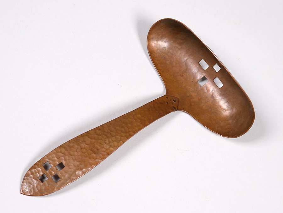- Minneapolis Handicraft Guild Hammered Copper Cutout Ladle c1910