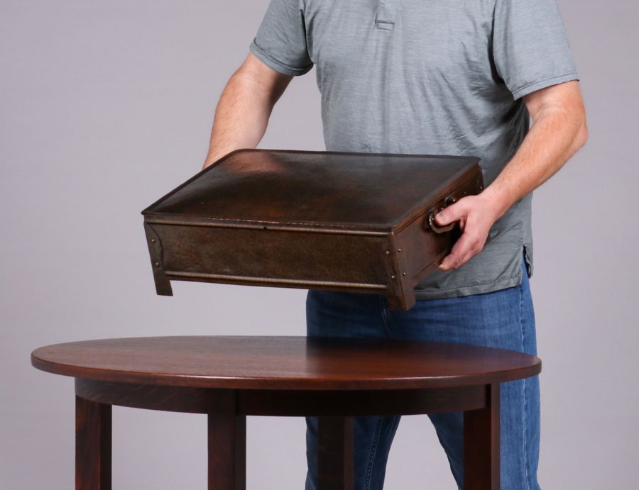 Massive Bay Area Hammered Copper Two-Handled Box c1920s. Unsigned. Likely made by someone who worked with Harry St John Dixon. Excellent original patina. 21.5w x 12.5d x 6.75h inches SOLD