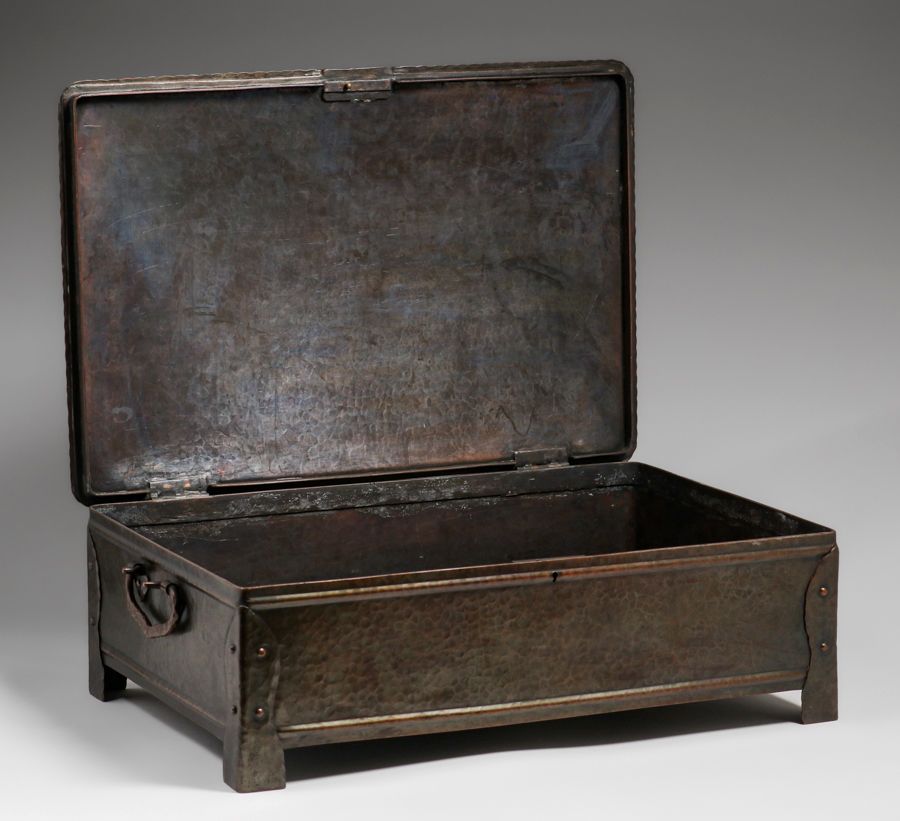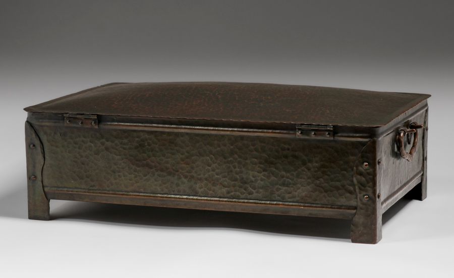 - Massive Bay Area Hammered Copper Two-Handled Box c1920s