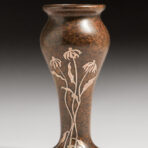 Two Heintz Sterling on Bronze Vases: 6″ Cylinder Vase, 3.5″ Small Bulbous Vase