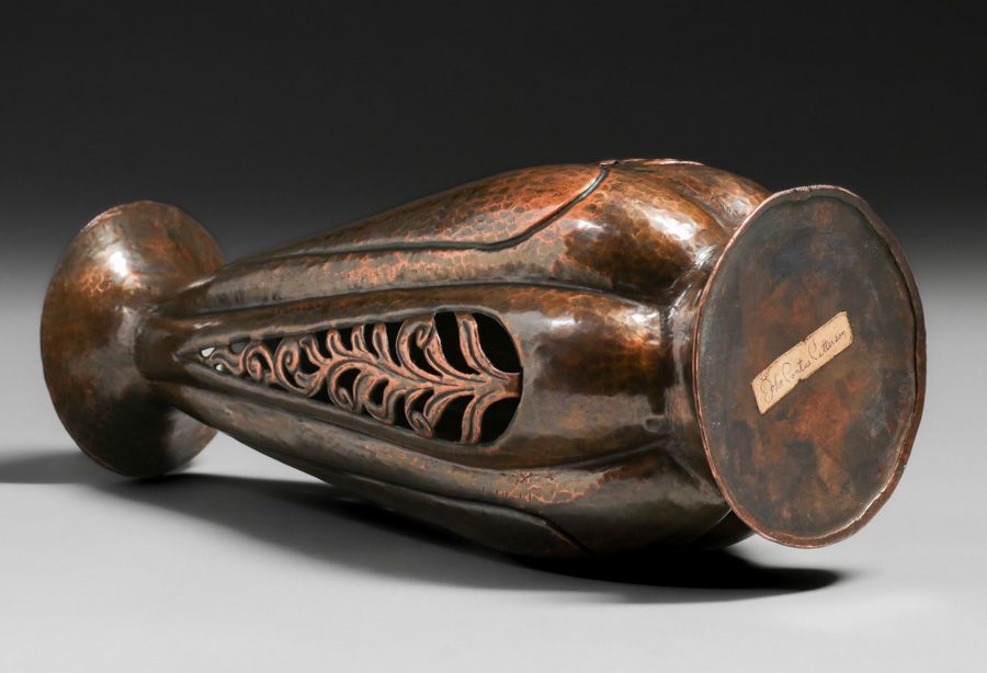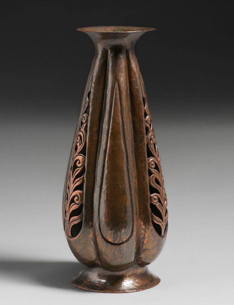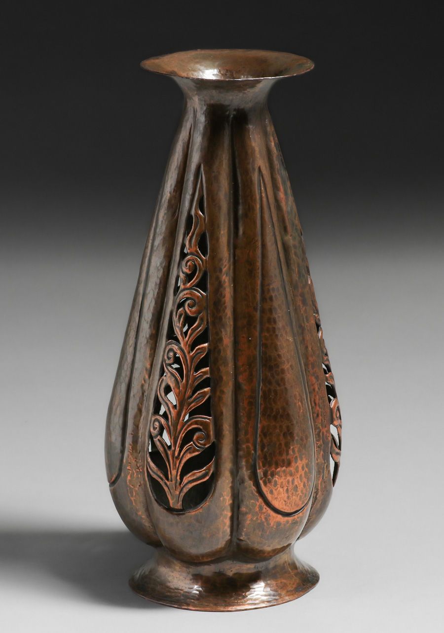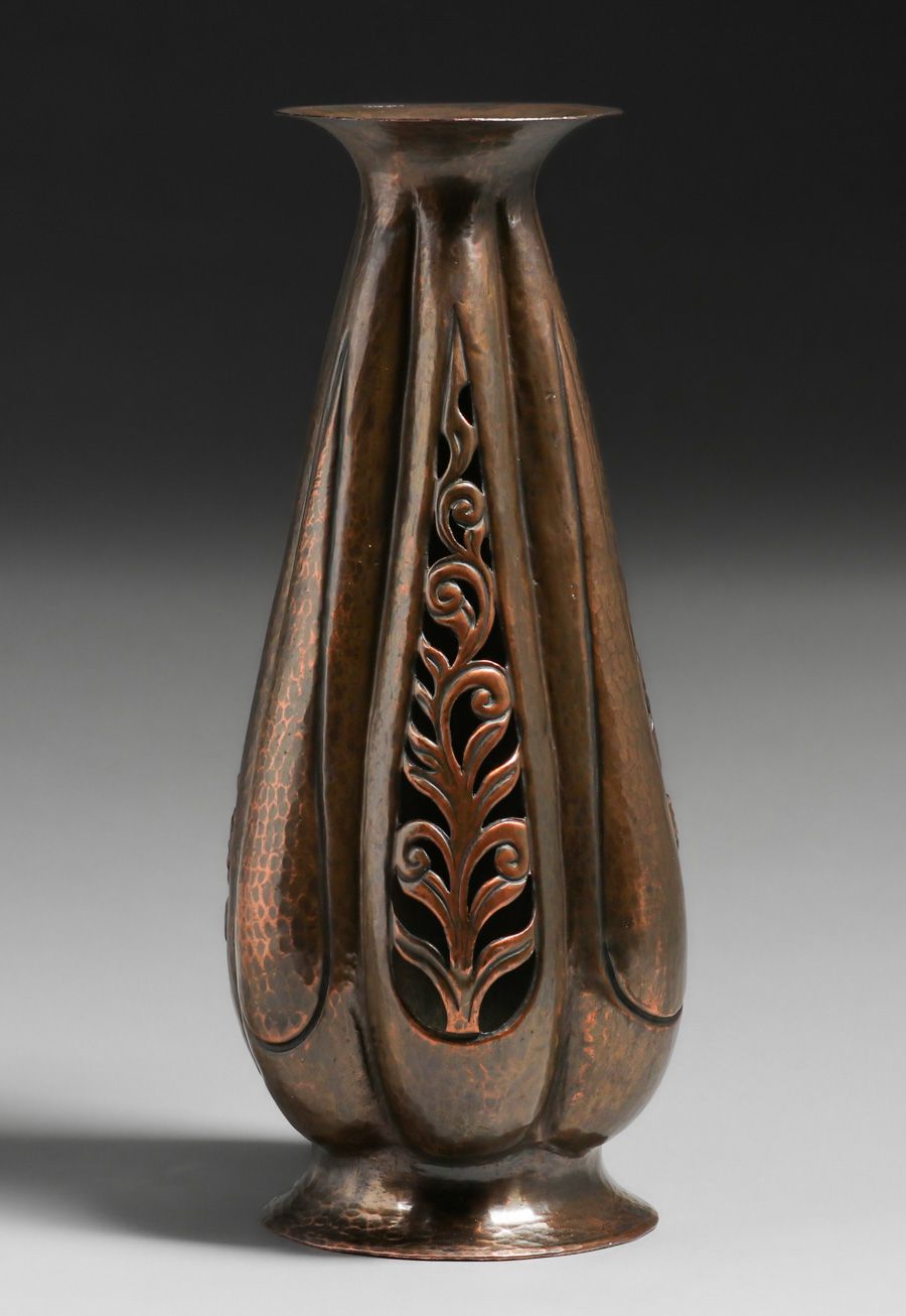 - John Pontus Petterson - Chicago Hammered Copper Cutout Vase c1913