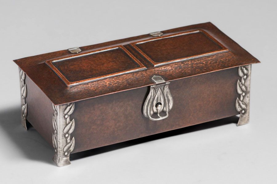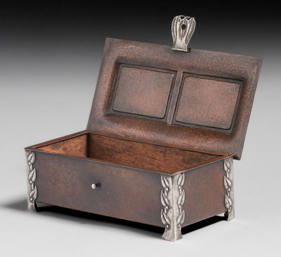 - John Sidney Burton Hammered Copper & Silver Box East Aurora, NY c1914-1915