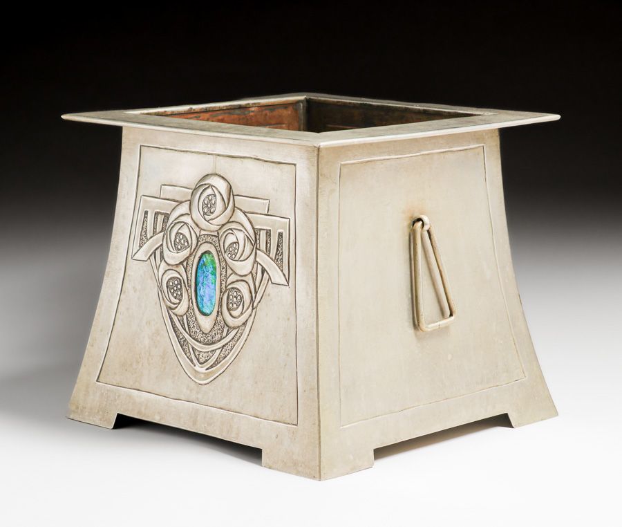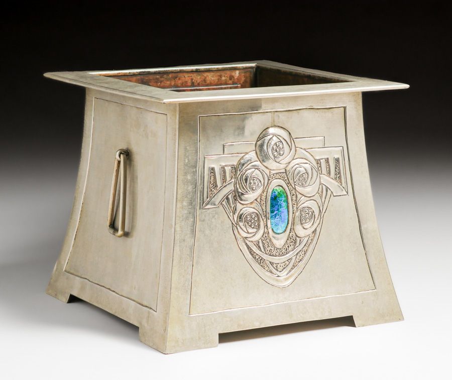 - Margaret Gilmour – Glasgow Hammered Copper Silver-Plated & Enamel Mackintosh Rose Jardiniere c1900s
