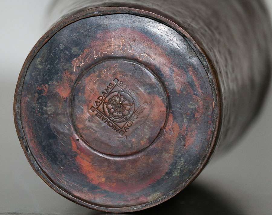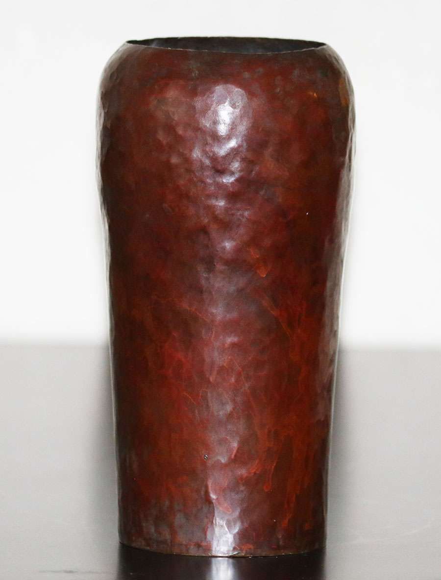 Michael Adams - Aurora Studios hammered copper "warty" experimental vase. This is a test vase - not a finished vase, but shows a beautiful example of Michael Adams's "warty" technique. Signed and dated 2010. 6.25"h x 4.5"d SOLD