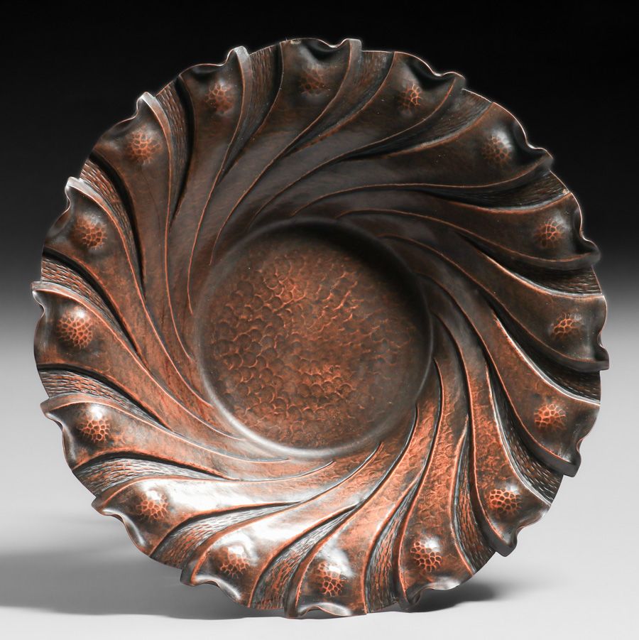 - Nekrasoff Hammered Copper Spiral Repousse Bowl c1940s