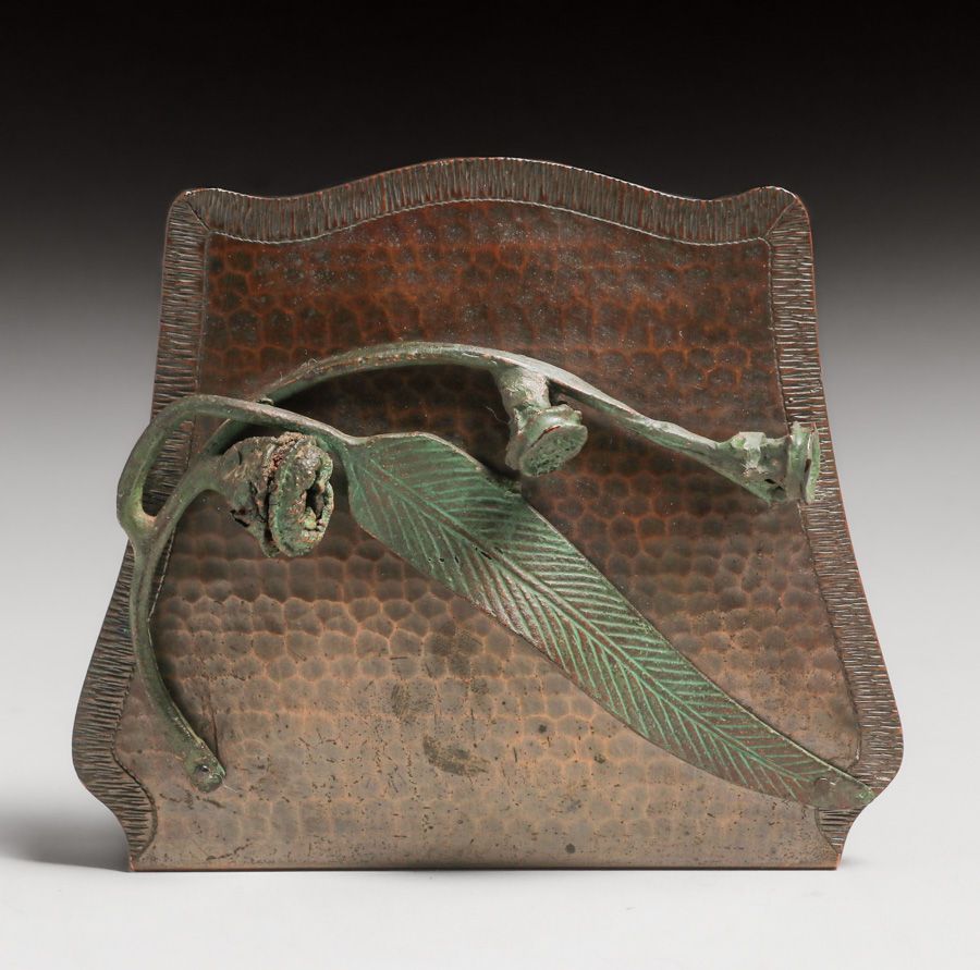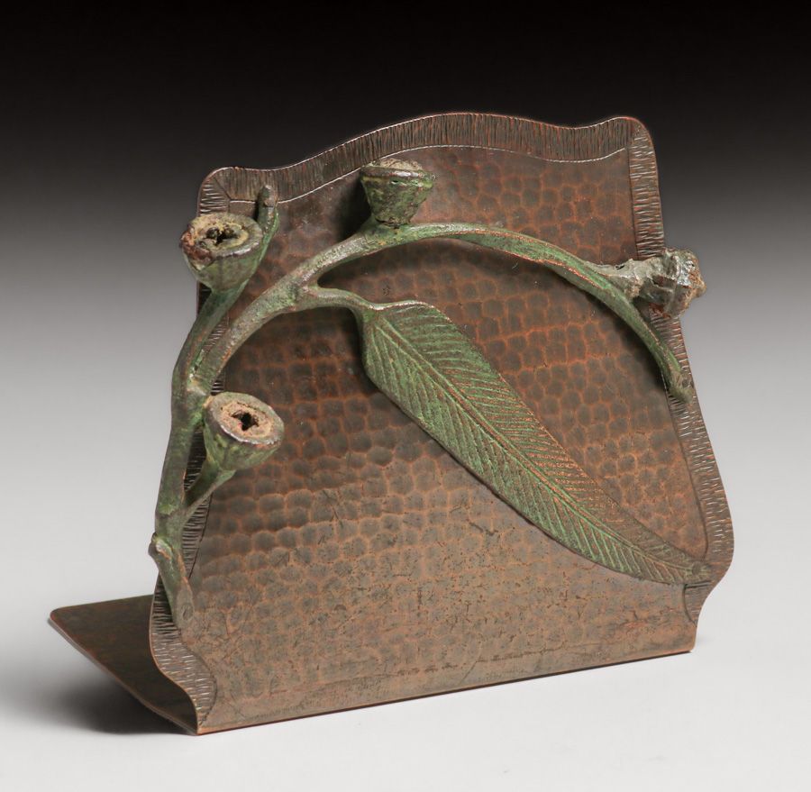 - Old Mission Kopper Kraft – Fred Brosi San Francisco Hammered Copper Eucalyptus Bookends c1922-1925