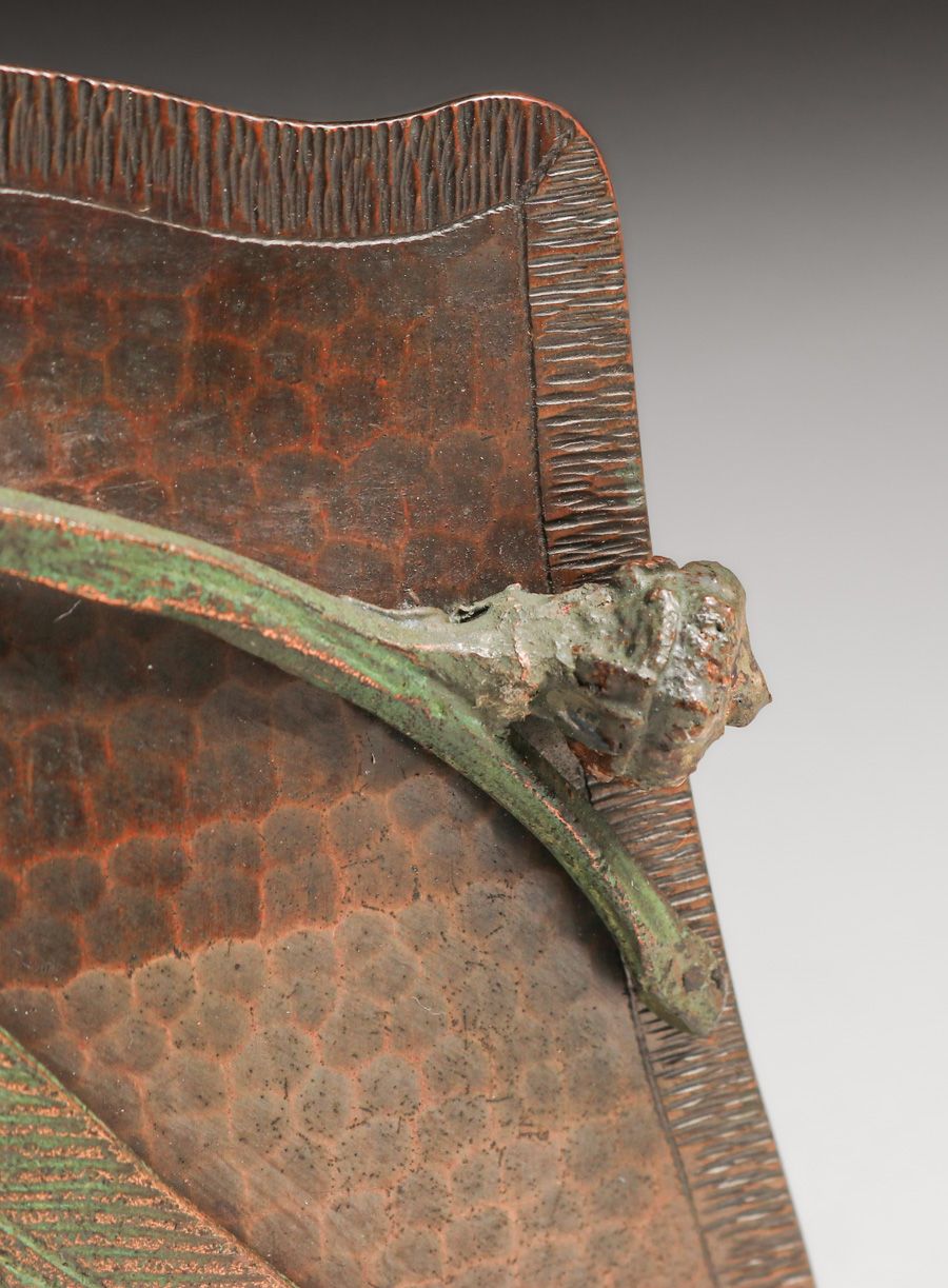 Old Mission Kopper Kraft – Fred Brosi San Francisco Hammered Copper Eucalyptus Bookends c1922-1925. Signed. Excellent original patina. 5.25"h x 6"w SOLD