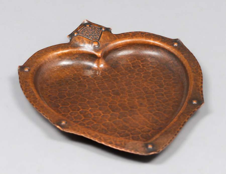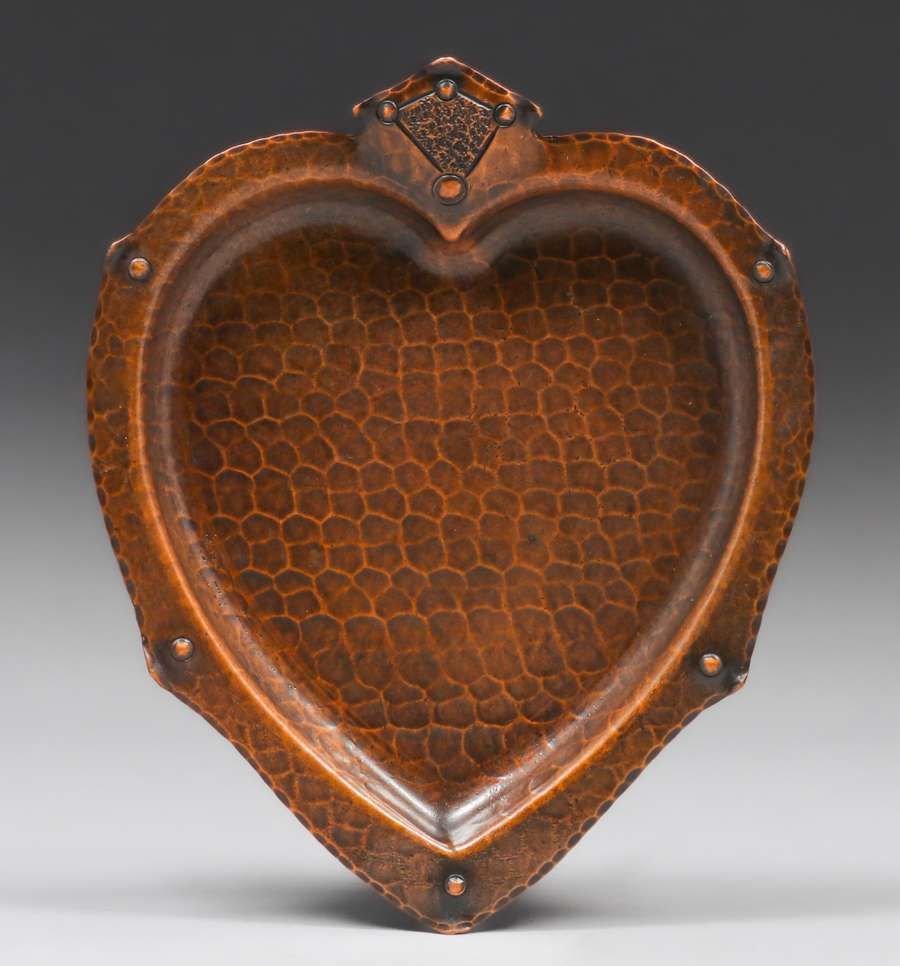 - Old Mission Kopper Kraft Hammered Copper Heart-Shaped Tray c1922-1925