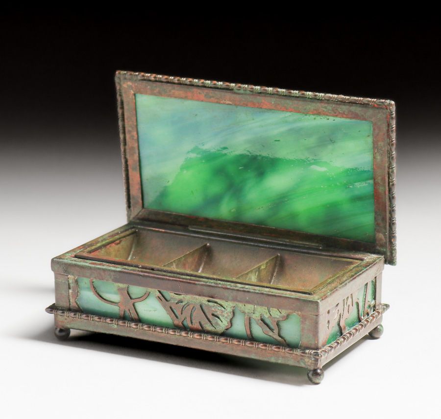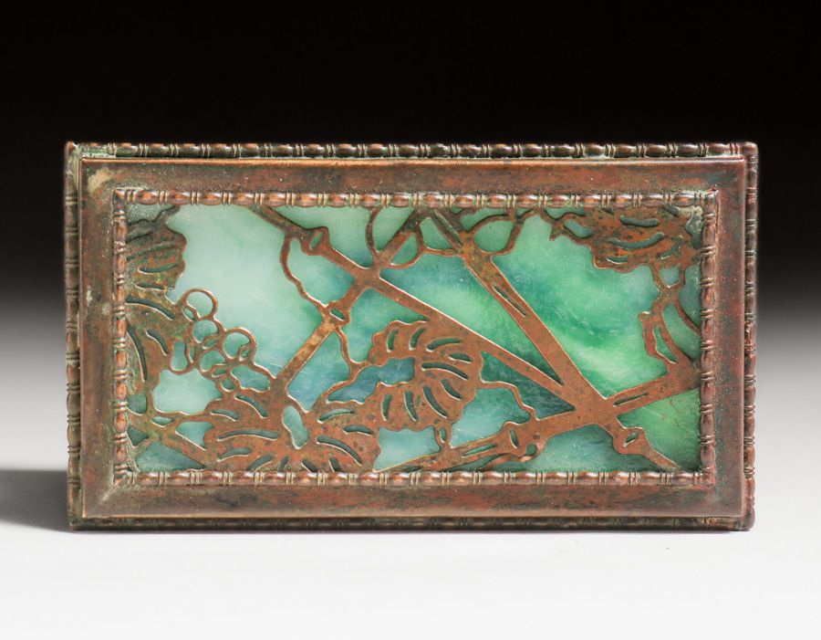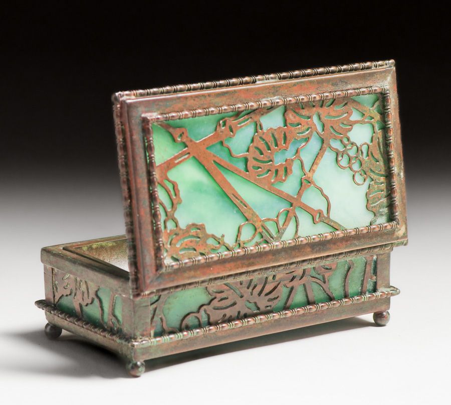 - Tiffany Studios #55 Grapevine Overlay Stamp Box c1910