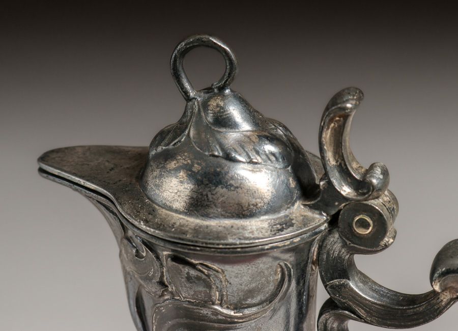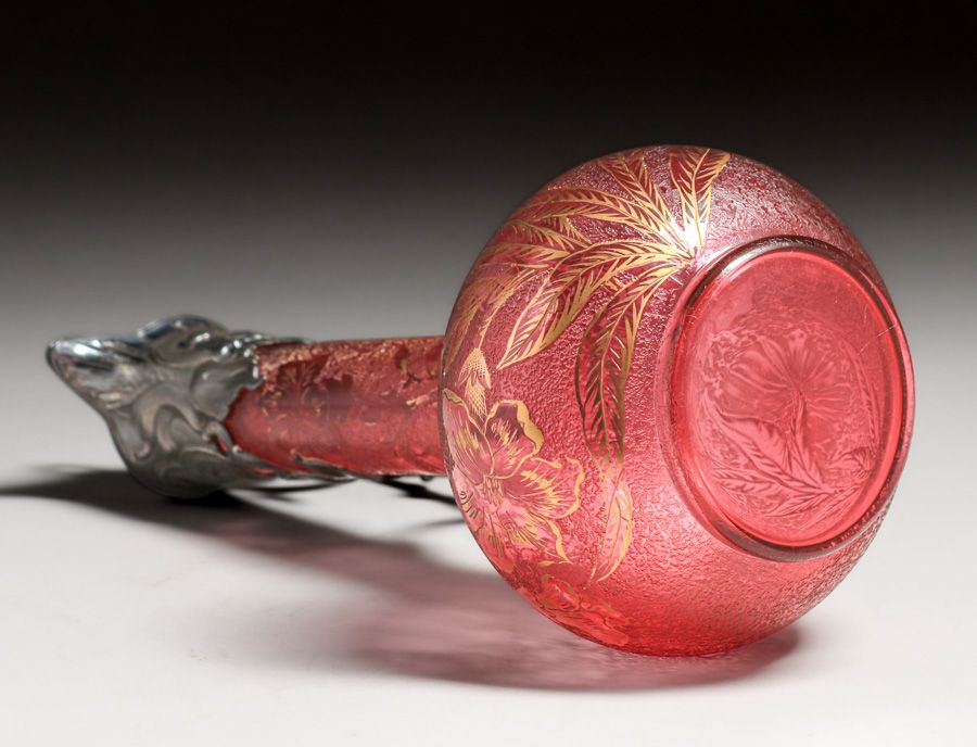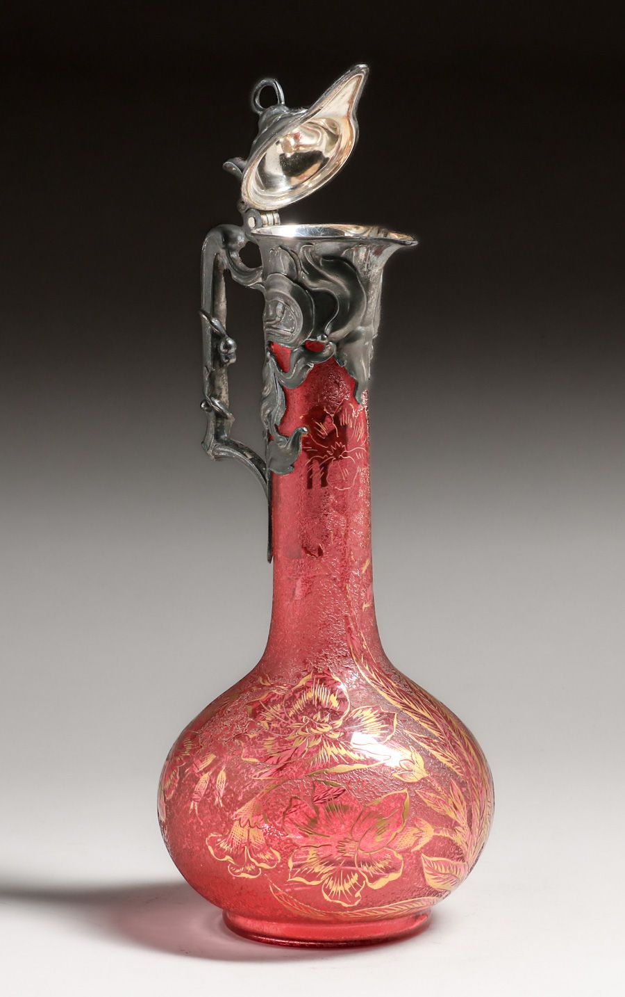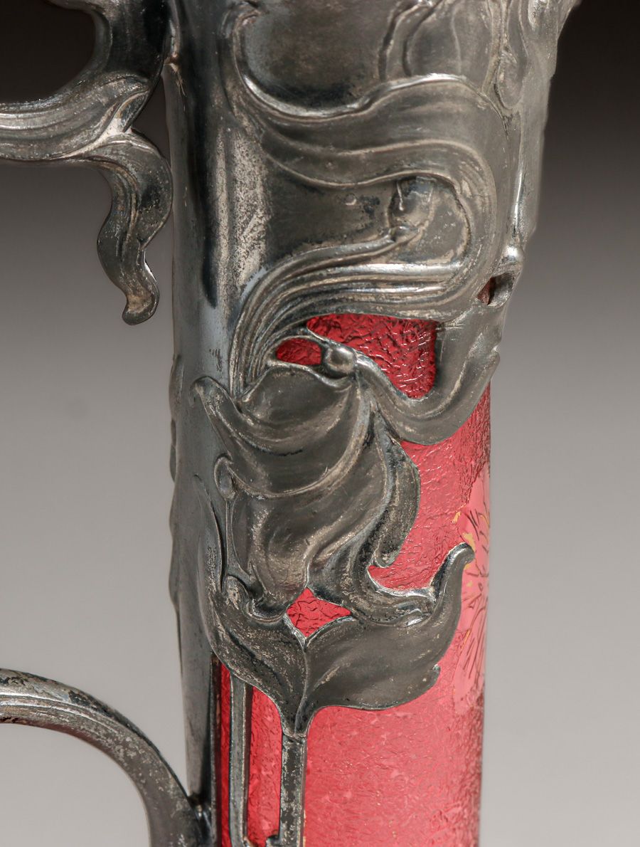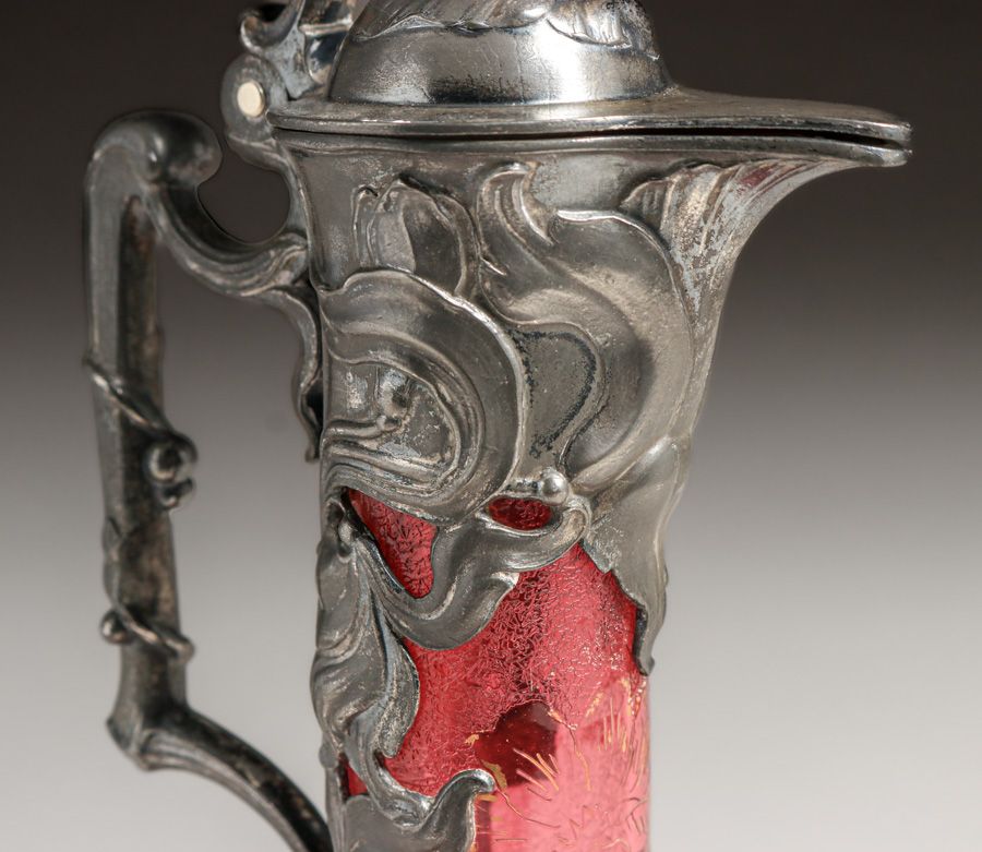 WMF - German Art Nouveau Silver-Plated & Cameo Glass Claret c1910. Signed. Excellent original patina. Cameo glass in perfect condition. 13"h x 5"d $1500