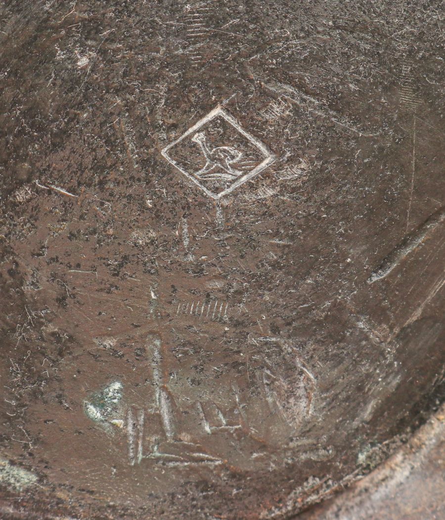 WMF - German Secessionist Repousse Hammered Copper & Brass Three-Stemmed Vase c1905. Signed. Excellent new patina. 13.5”h x 4”d $2800