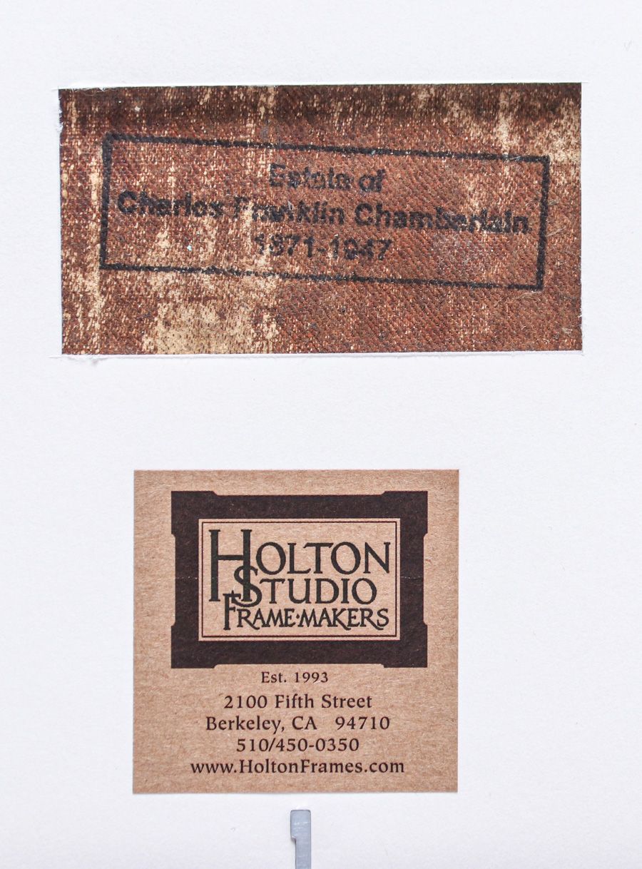 Charles Franklin Chamberlain (1871 – 1947) Impressionist Clouds & Hills c1920s. Chamberlain studied in the Detroit Academy; Art Students League; Julien Academy (Paris) with Tony Robert-Fleury and Jules Lefebvre, and also under Aman-Jean, Merson and Collin. Estate signed. Excellent condition. 9″h x 12″w. Frame 12.25″h x 15.25″w SOLD