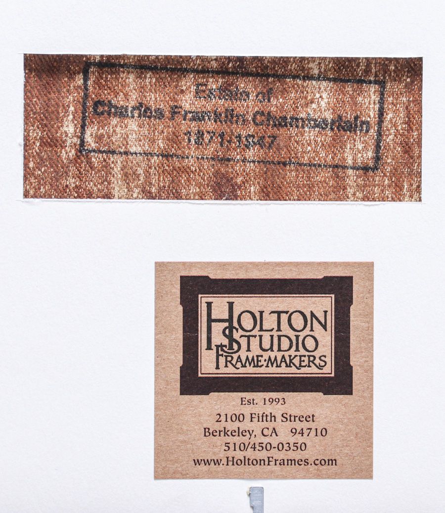 Charles Franklin Chamberlain (1871 – 1947) Impressionist Trees & Clouds c1920s. Chamberlain studied in the Detroit Academy; Art Students League; Julien Academy (Paris) with Tony Robert-Fleury and Jules Lefebvre, and also under Aman-Jean, Merson and Collin. Estate signed. Excellent condition. 9″h x 12″w. Frame 12.25″h x 15.25″w SOLD