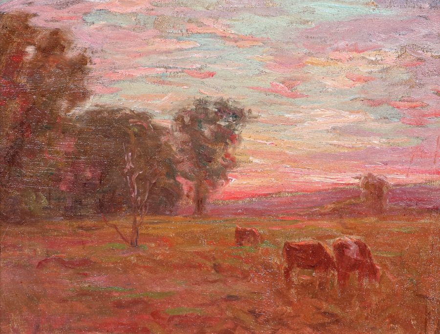 - Charles Franklin Chamberlain Impressionist Painting Sunset Pasture c1920s