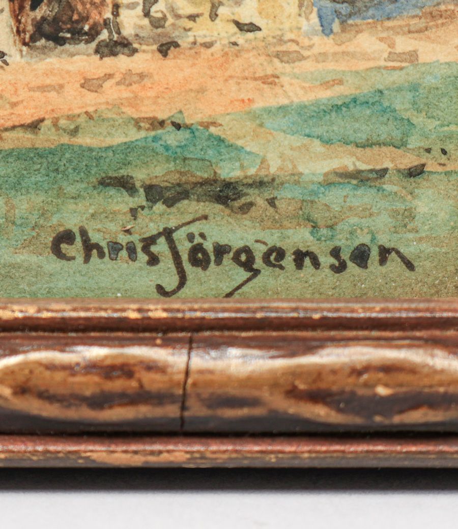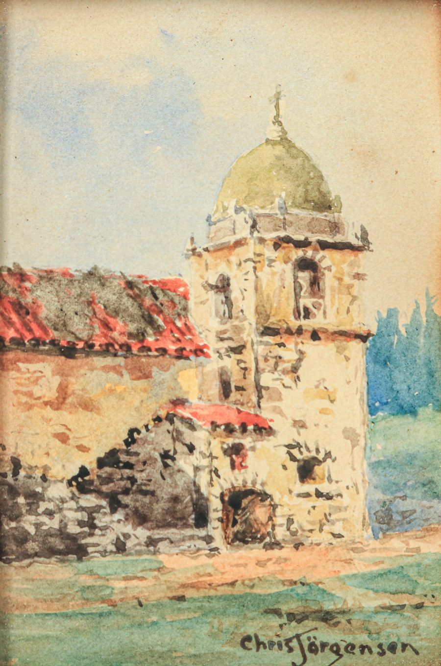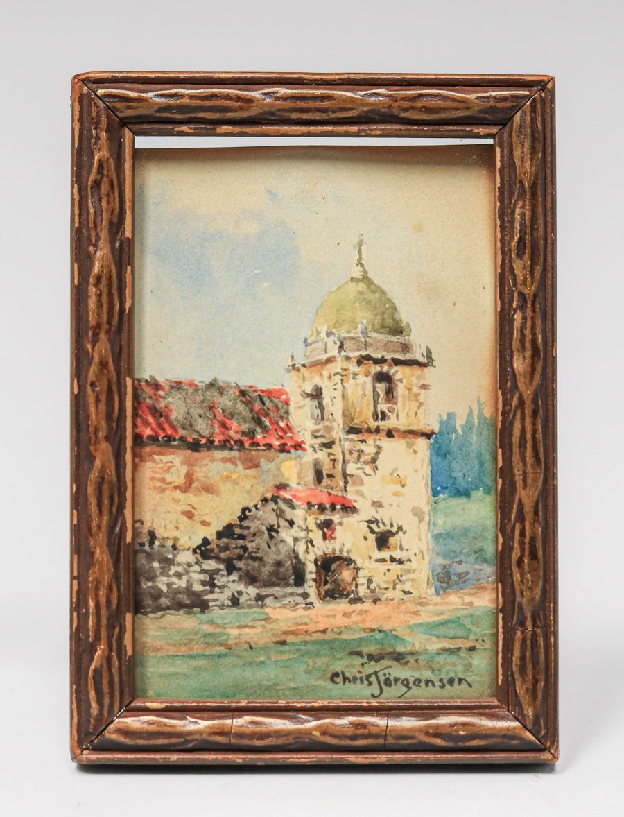 - Chris Jorgensen (1860-1935) Miniature Watercolor Carmel Mission c1900s