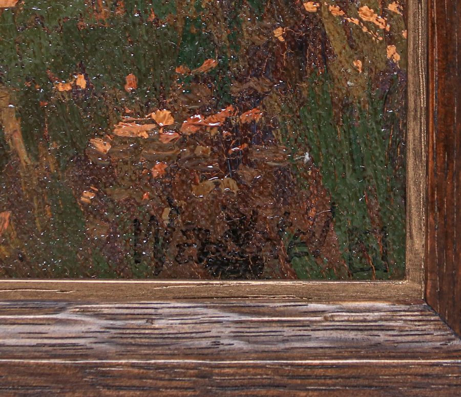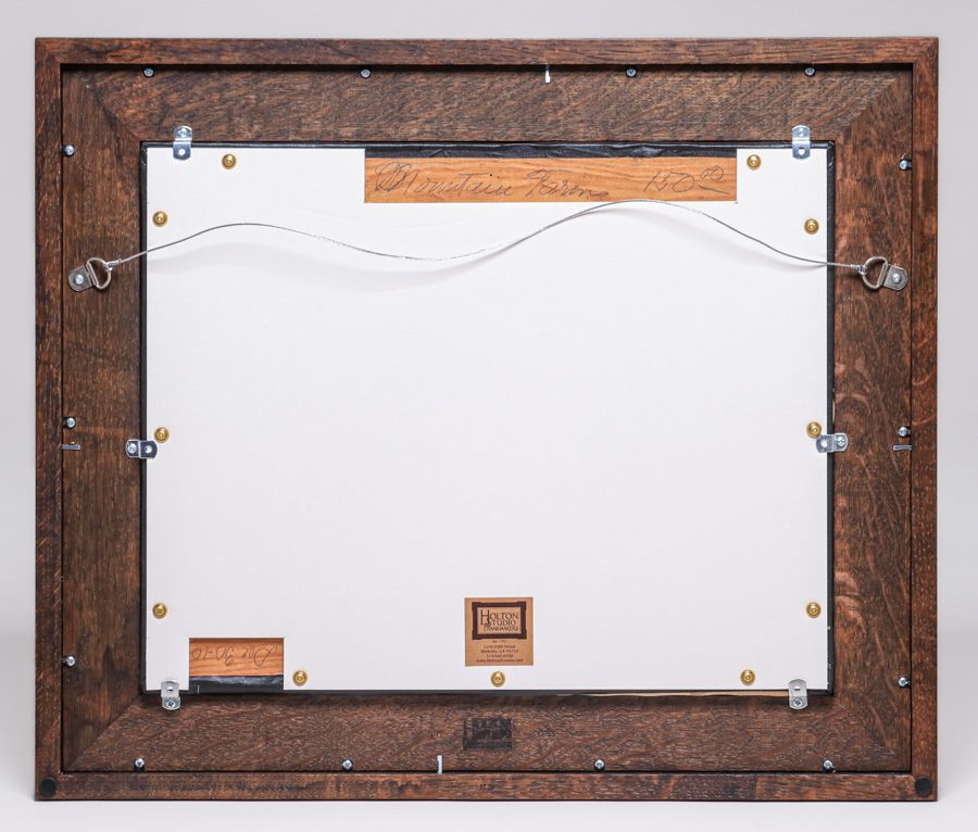 Elmer Wachtel (1864-1929) California Painting "Mountain Farm" 1910. Oil painting on canvas. Recently acquired from Gold Hill, Oregon Estate where the painting has resided for the past 100+ years. Signed. Excellent condition. Tim Holton hand-carved oak frame. 16"h x 20"w. Holton frame 22 1/8"h x 26 1/8"w SOLD