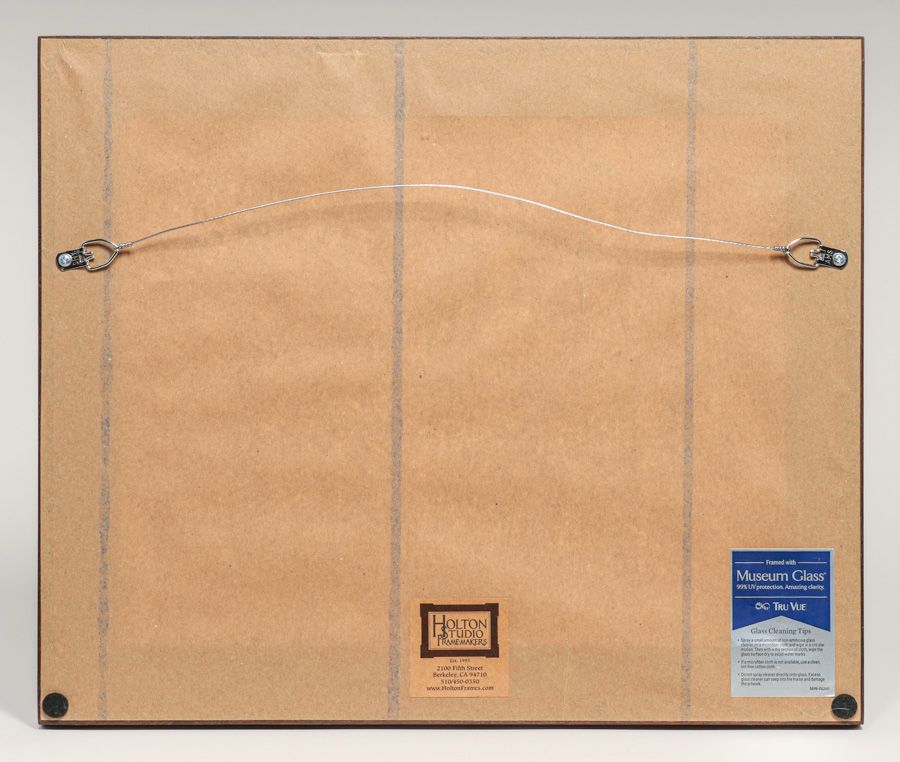George Demont Otis (1879-1962) California Eucalyptus & Barn c1920. Oil painting on panel. Signed. Excellent condition. Tim Holton hand carved walnut frame. 9"h x 12"w. Frame 13 7/8"h x 16 5/8"w $3500