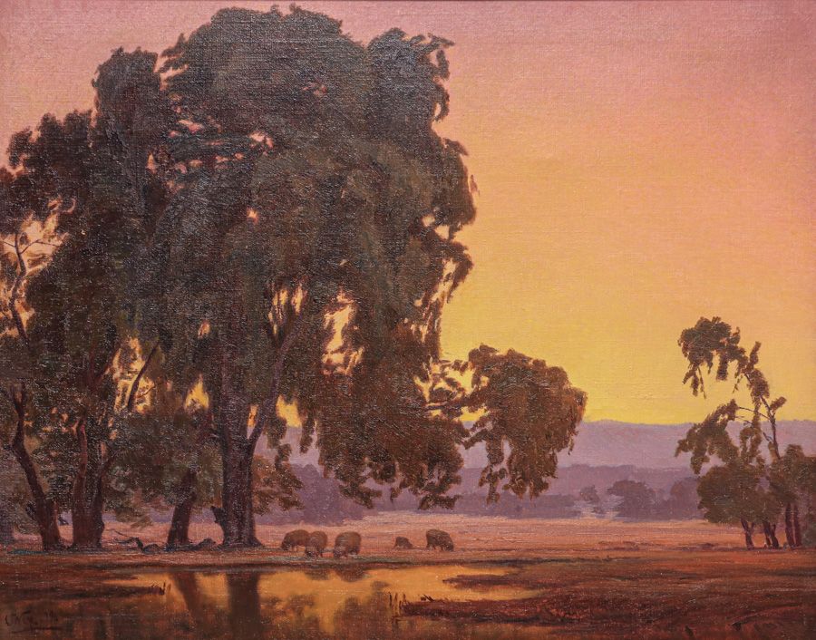 - Henry Otto Wix (1866-1922) Eucalyptus Sunset California Painting 1919