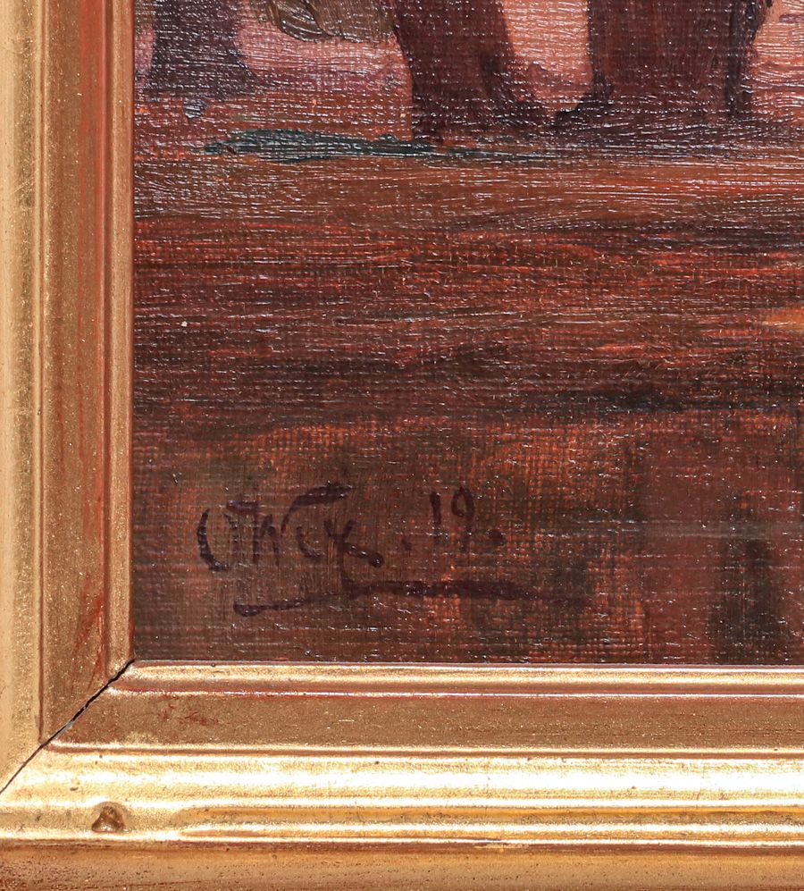 Henry Otto Wix (1866-1922) Eucalyptus Sunset California Painting 1919. Wix was active in Northern California and often painted Marin Co. 36″h x 29″w. 22″h x 28″w. Frame 29″h x 34.5″w SOLD
