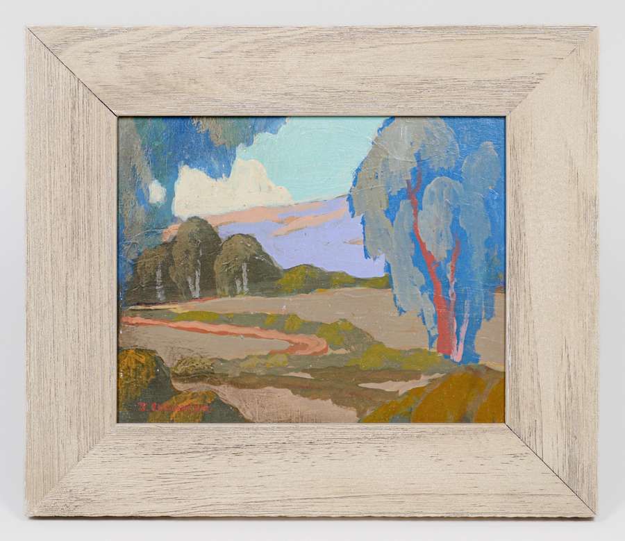 Jack Cassinetto (1944-2018) California Painting Eucalyptus Trees c2015. Excellent condition. Signed. 8″h x 10″w. Frame 12″h x 14″w SOLD