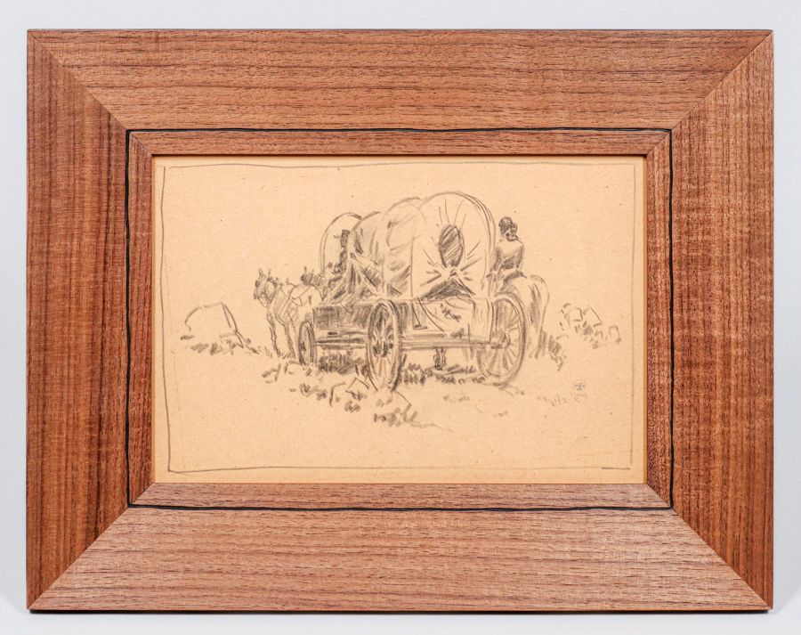 - Maynard Dixon Graphite Drawing "Navajo Wagon" 1904
