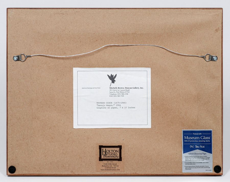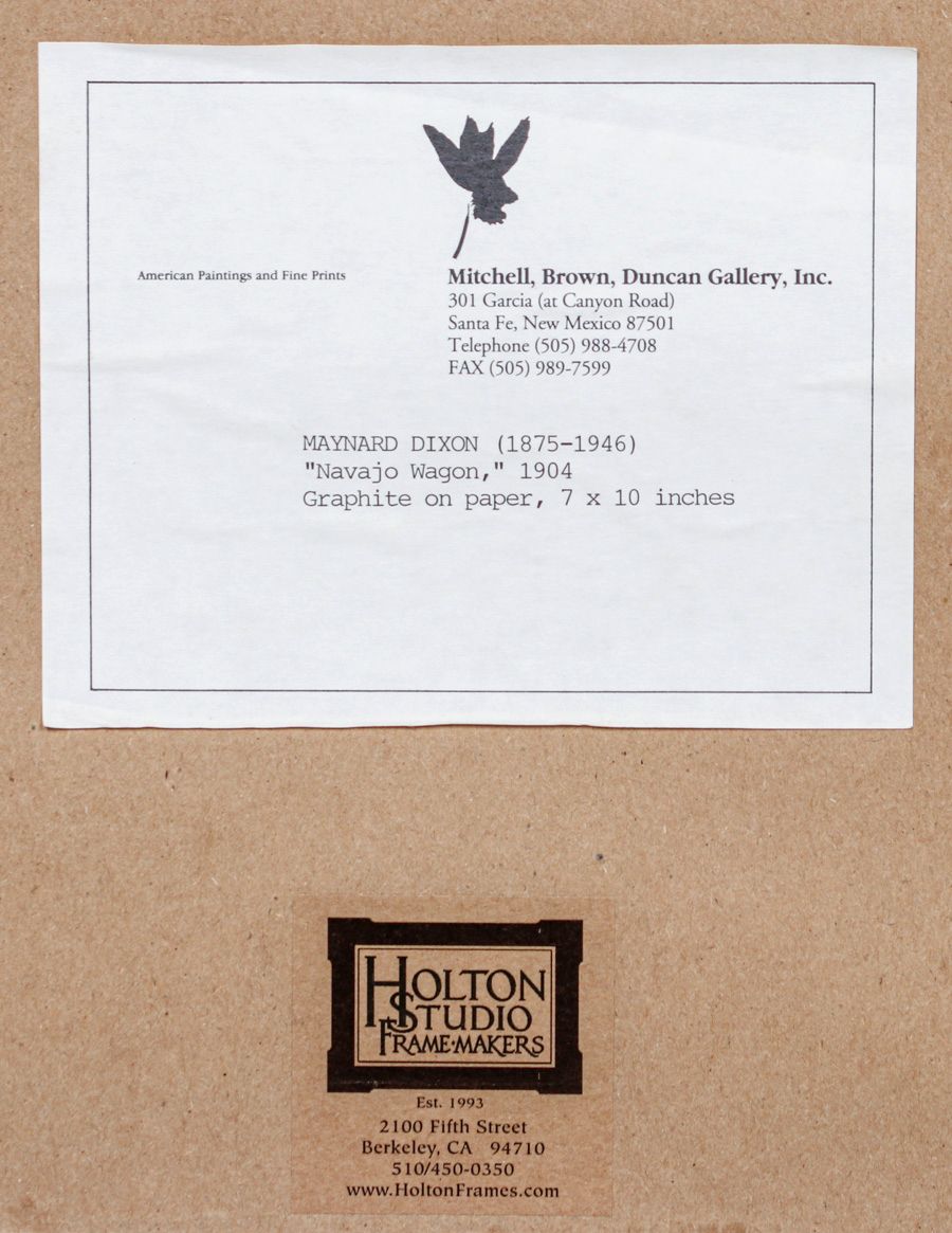 Maynard Dixon (1875-1946) Graphite Drawing "Navajo Wagon" 1904. Signed. Excellent condition. 6.5" x 9.5"w. Tim Holton custom frame 11 5/8"h x 15"w SOLD